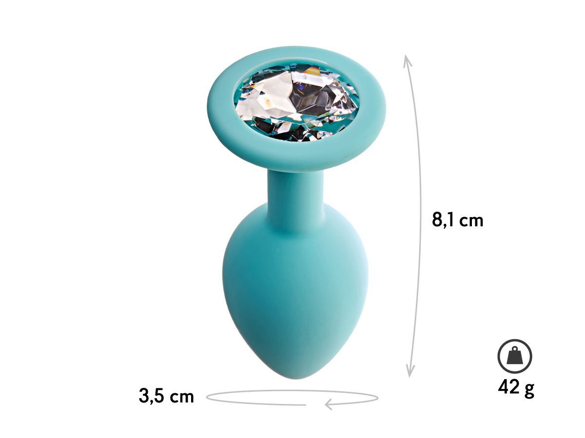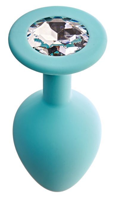 Аквамариновая анальная пробка с прозрачным кристаллом Gamma M - 8,1 см.