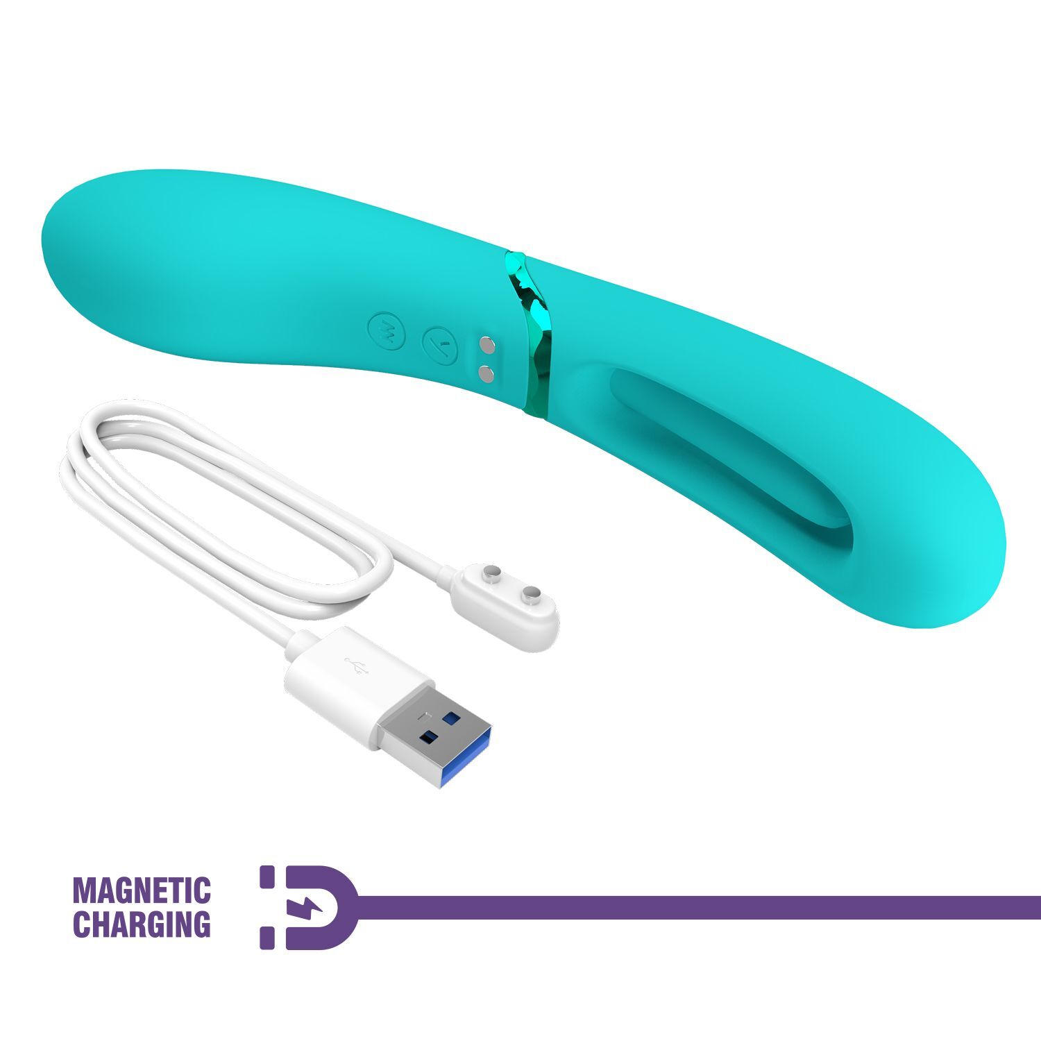 Аквамариновый двусторонний вибратор с функцией фингеринга Lexie - 20 см.