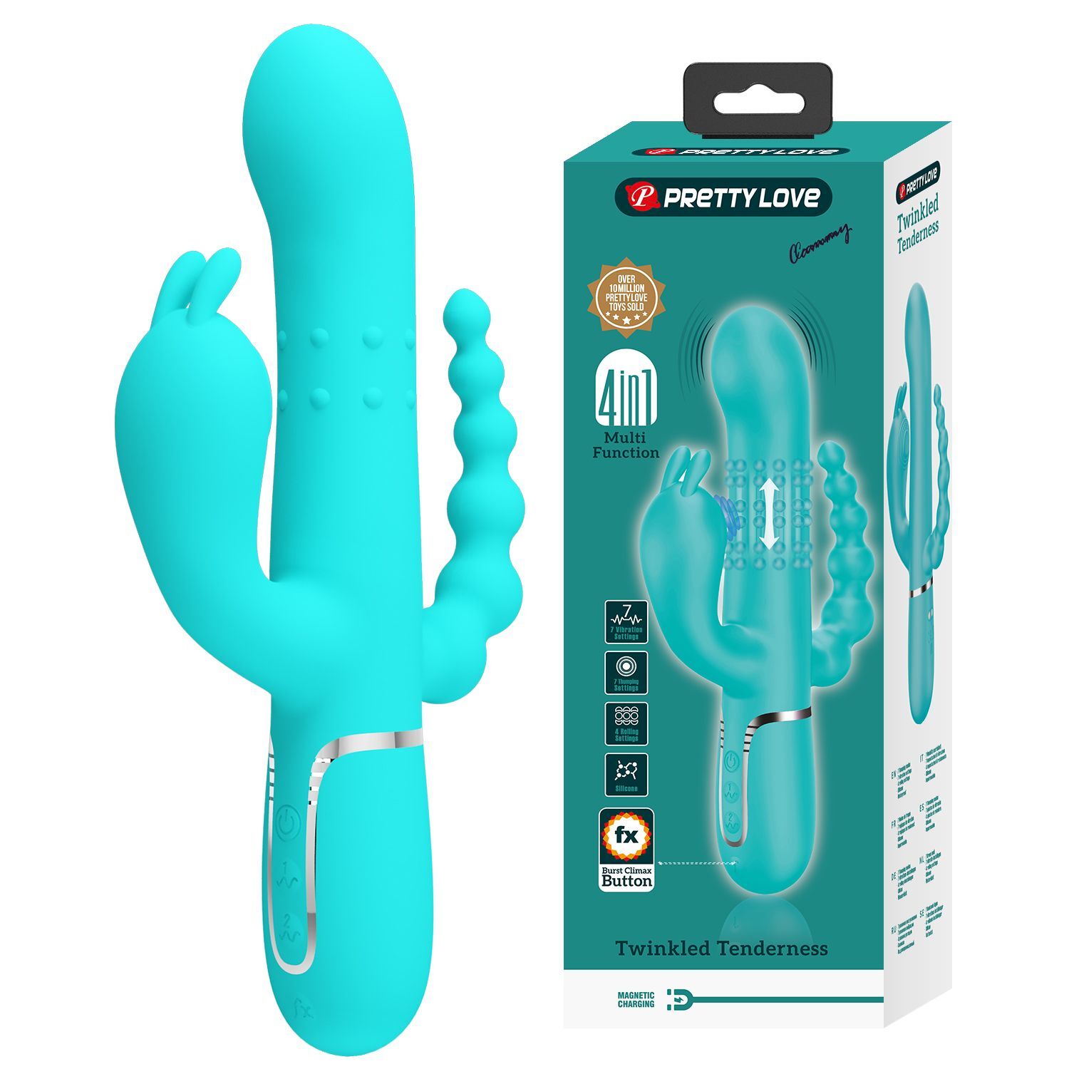 Аквамариновый вибратор для тройной стимуляции Cammy - 22,2 см.