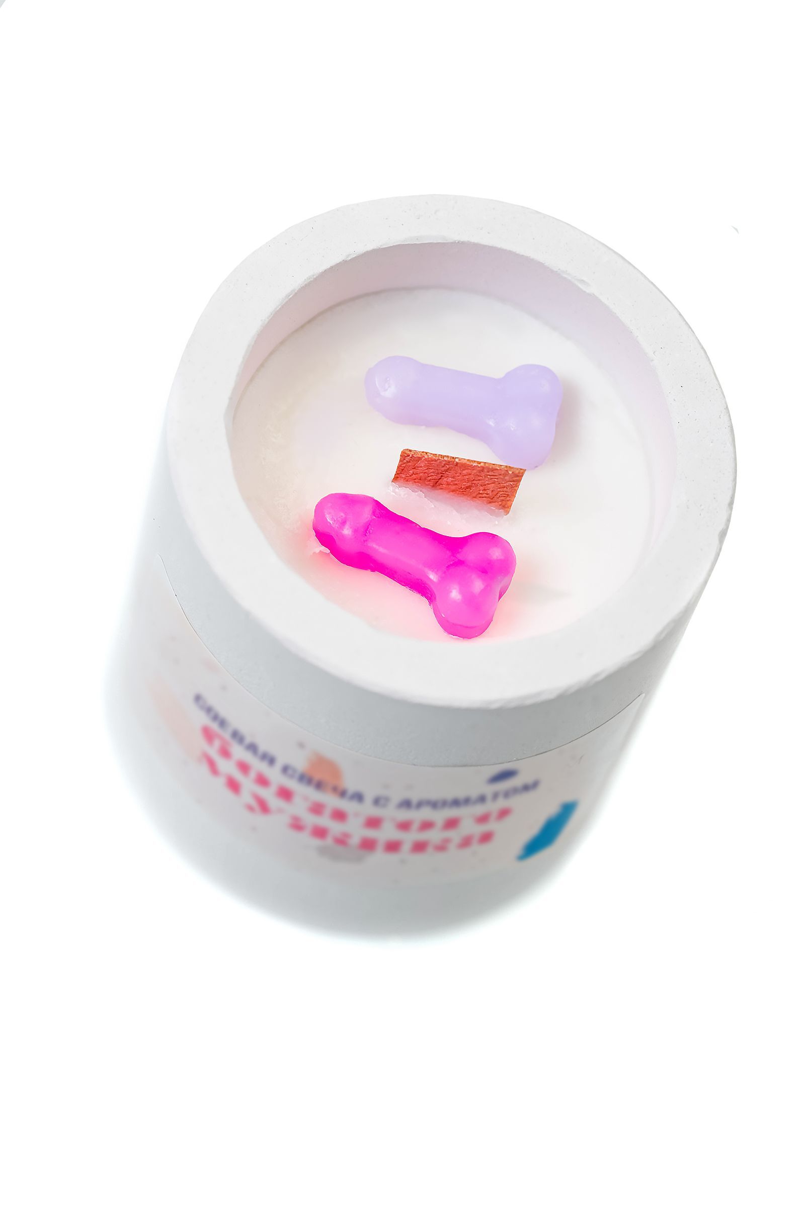 Соевый воск, ароматизатор, деревянный фитиль. Тара для свечи изготовлена из скульптурного гипса. Время горения - 35 часов.