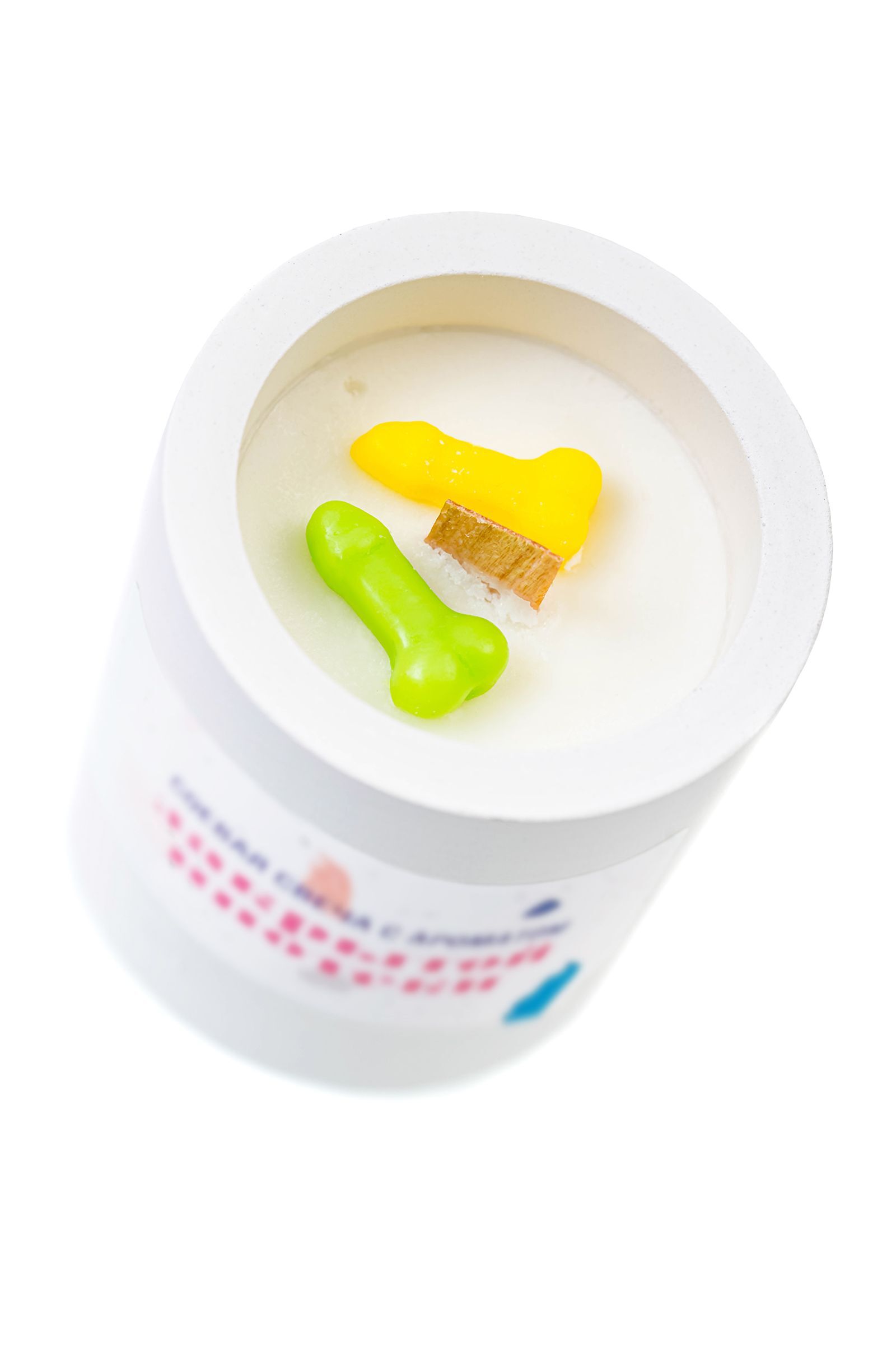 соевый воск, ароматизатор, деревянный фитиль. Тара для свечи изготовлена из скульптурного гипса. Время горения - 35 часов.