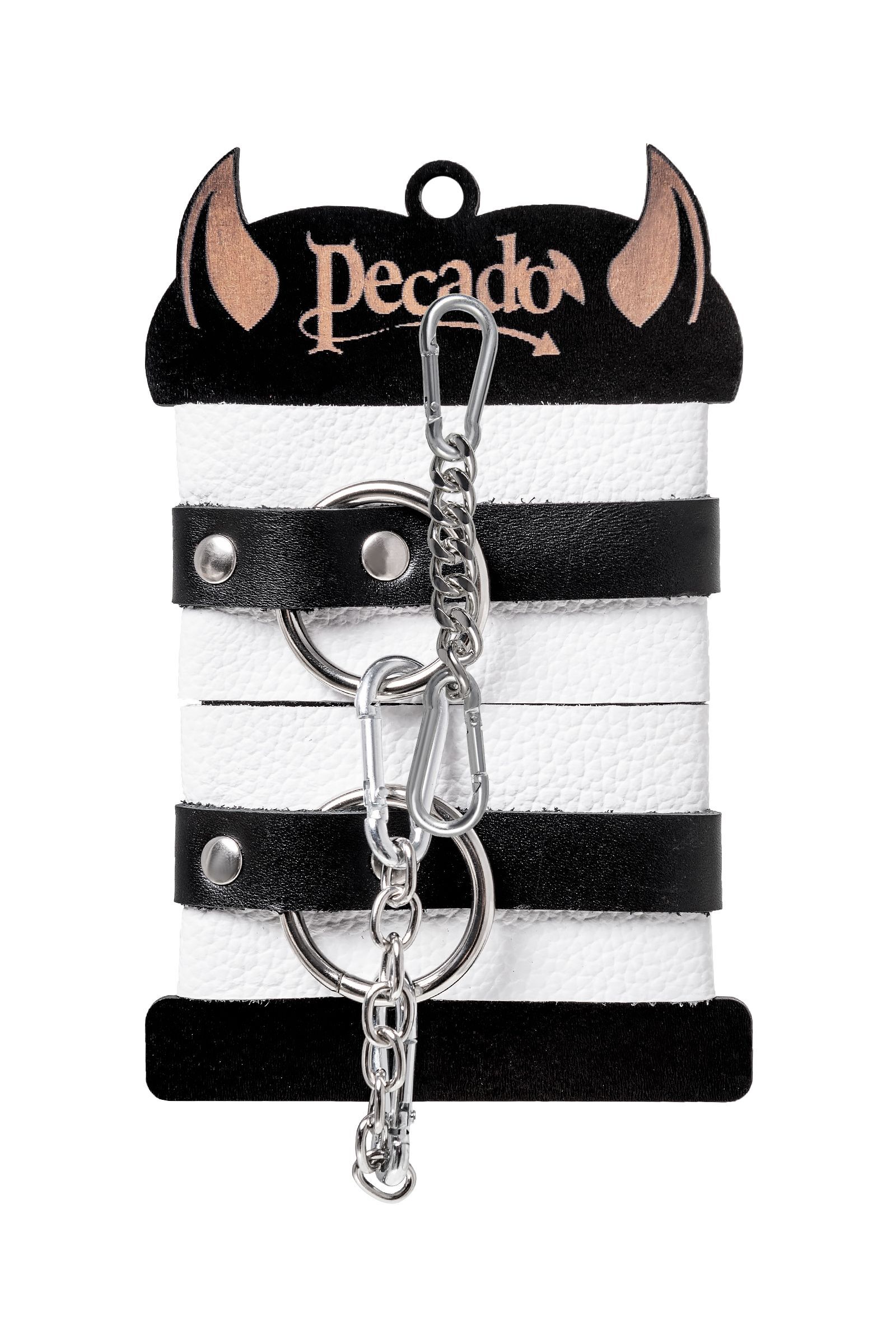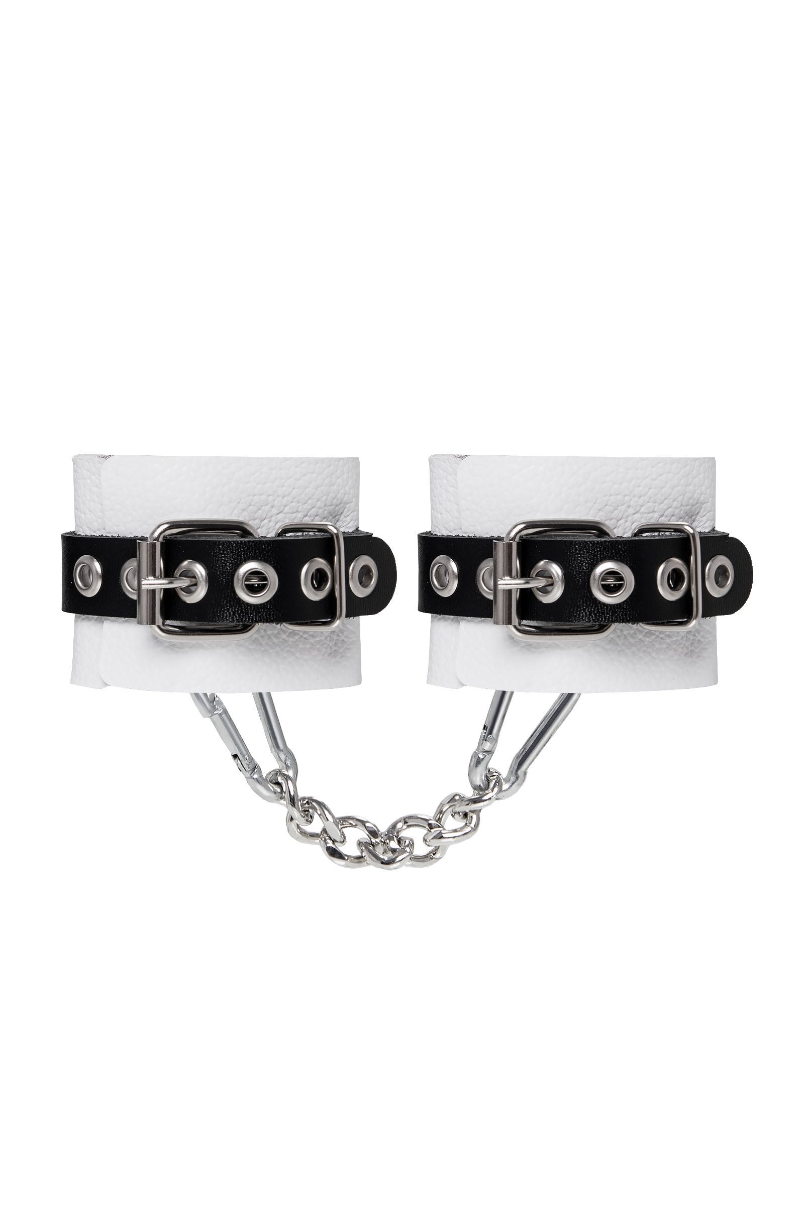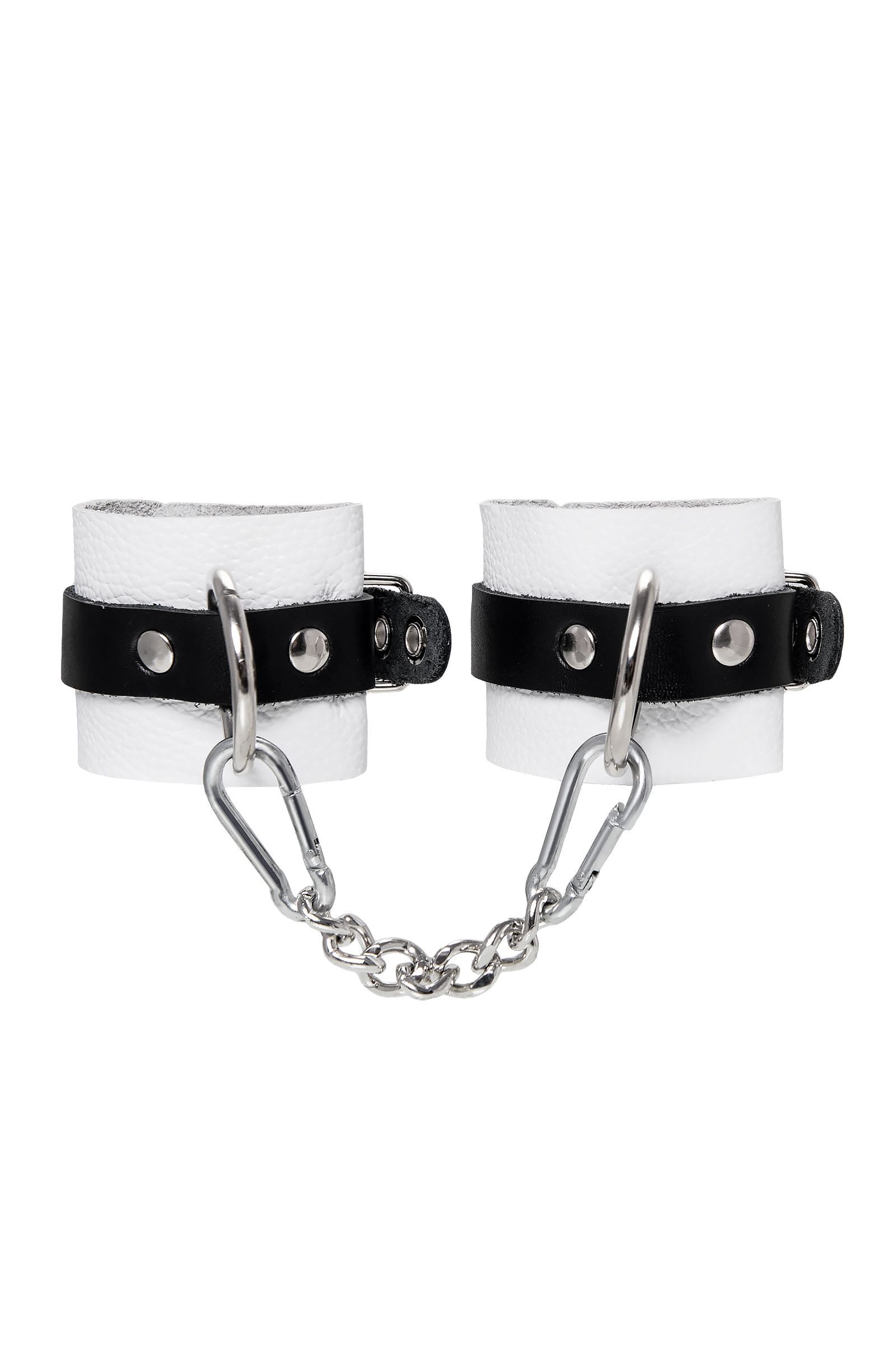 Бело-черные кожаные наручники с одним ремешком с люверсами