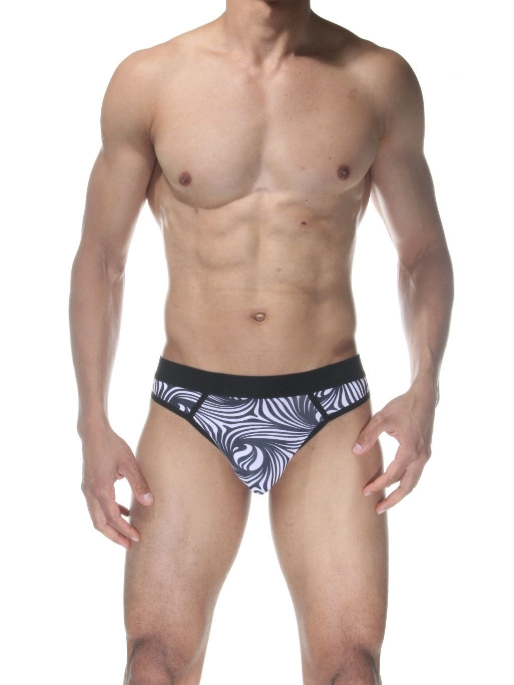 Бело-черные мужские трусы-стринги с абстрактным принтом