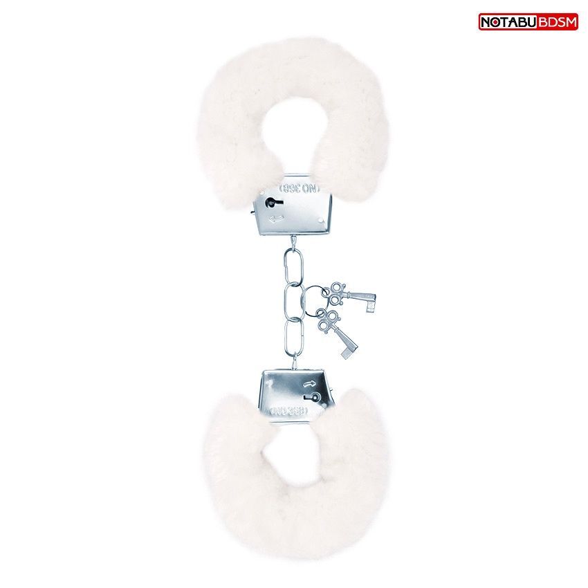 Белые меховые наручники на сцепке с ключиками