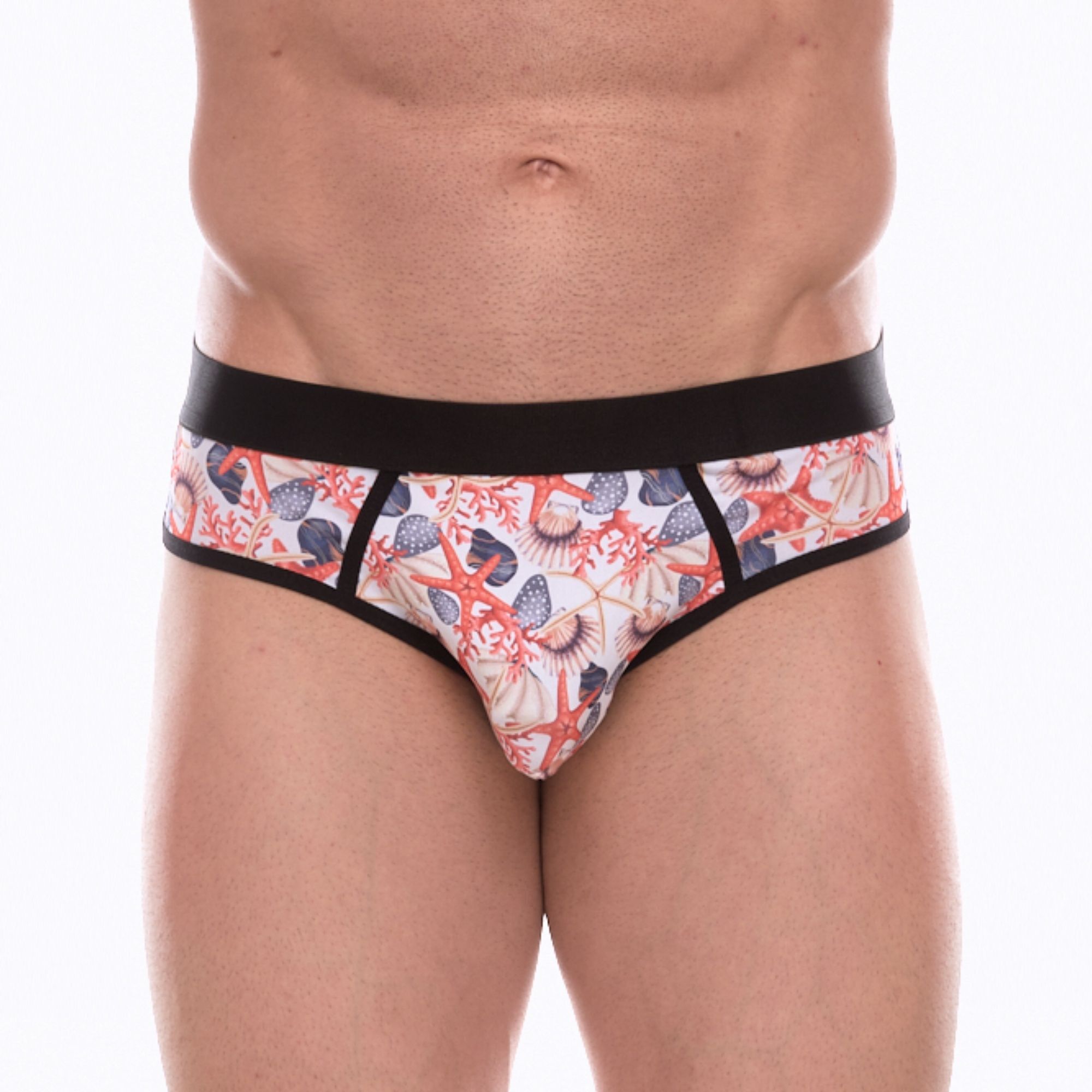 Белые трусы-джоки с принтом в виде цветных ракушек