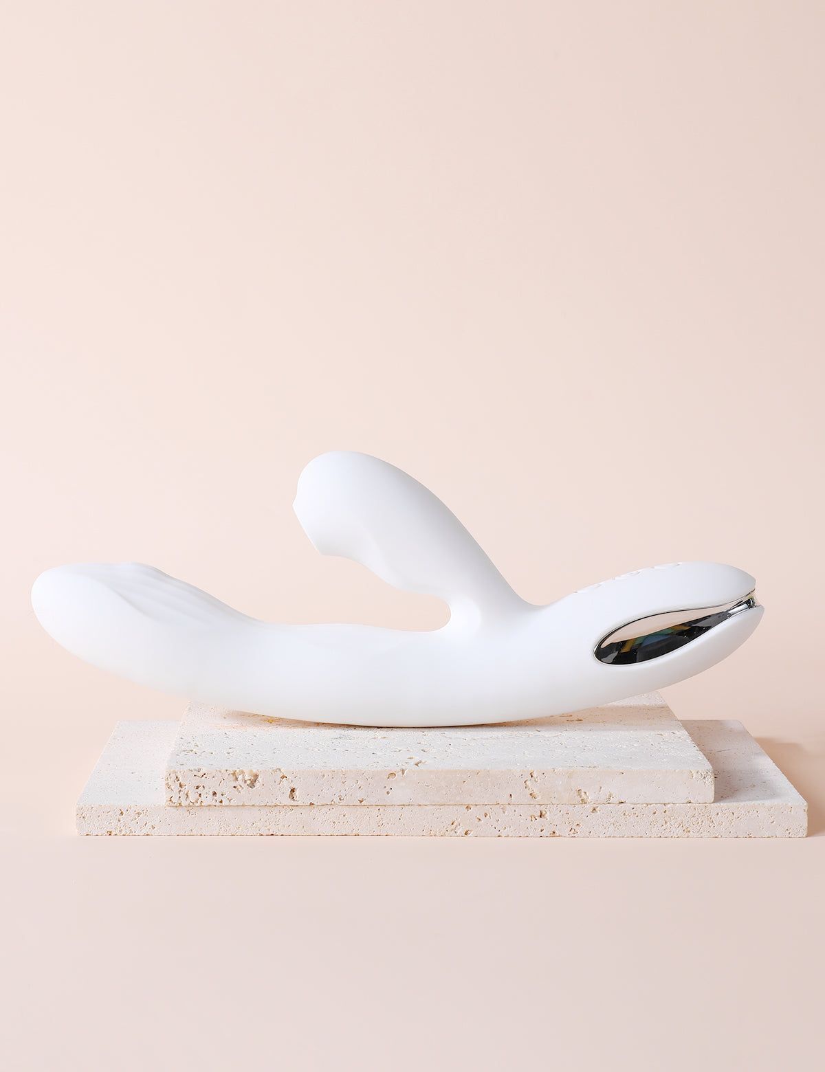 Белый вибратор-кролик Eria с вакуумной стимуляцией, функцией tapping и нагревом - 21,5 см.