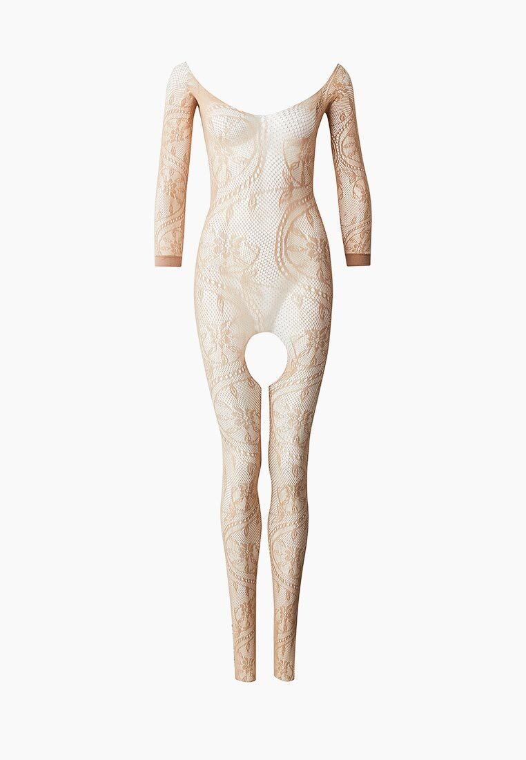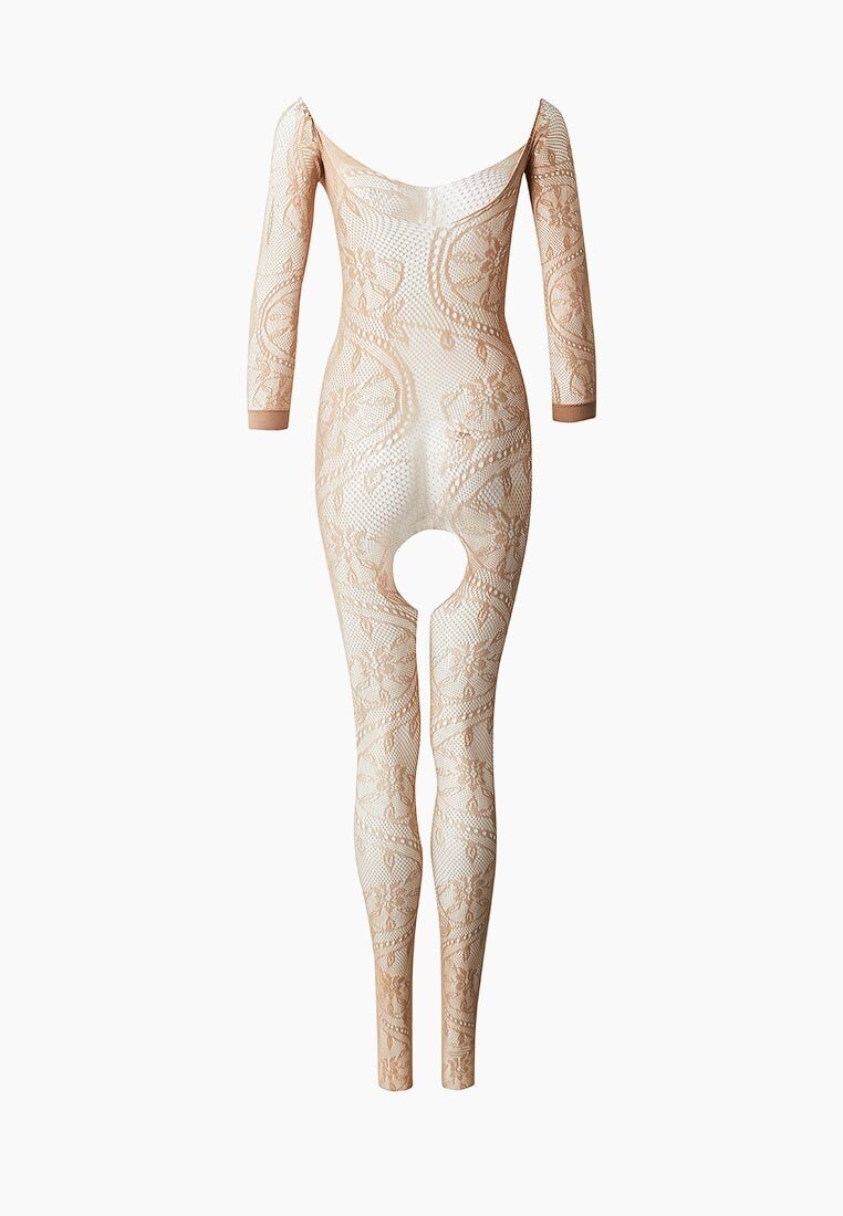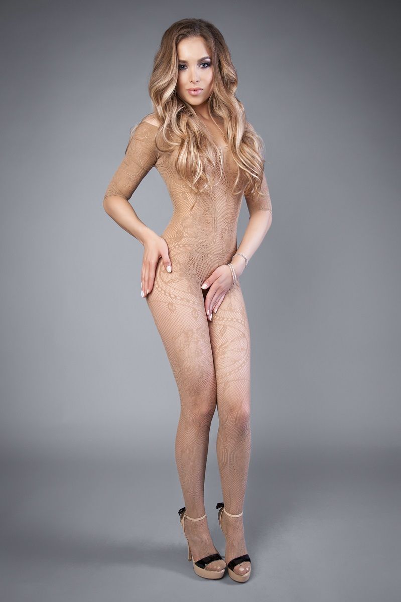 Бежевый комбинезон с замысловатым узором и короткими рукавами