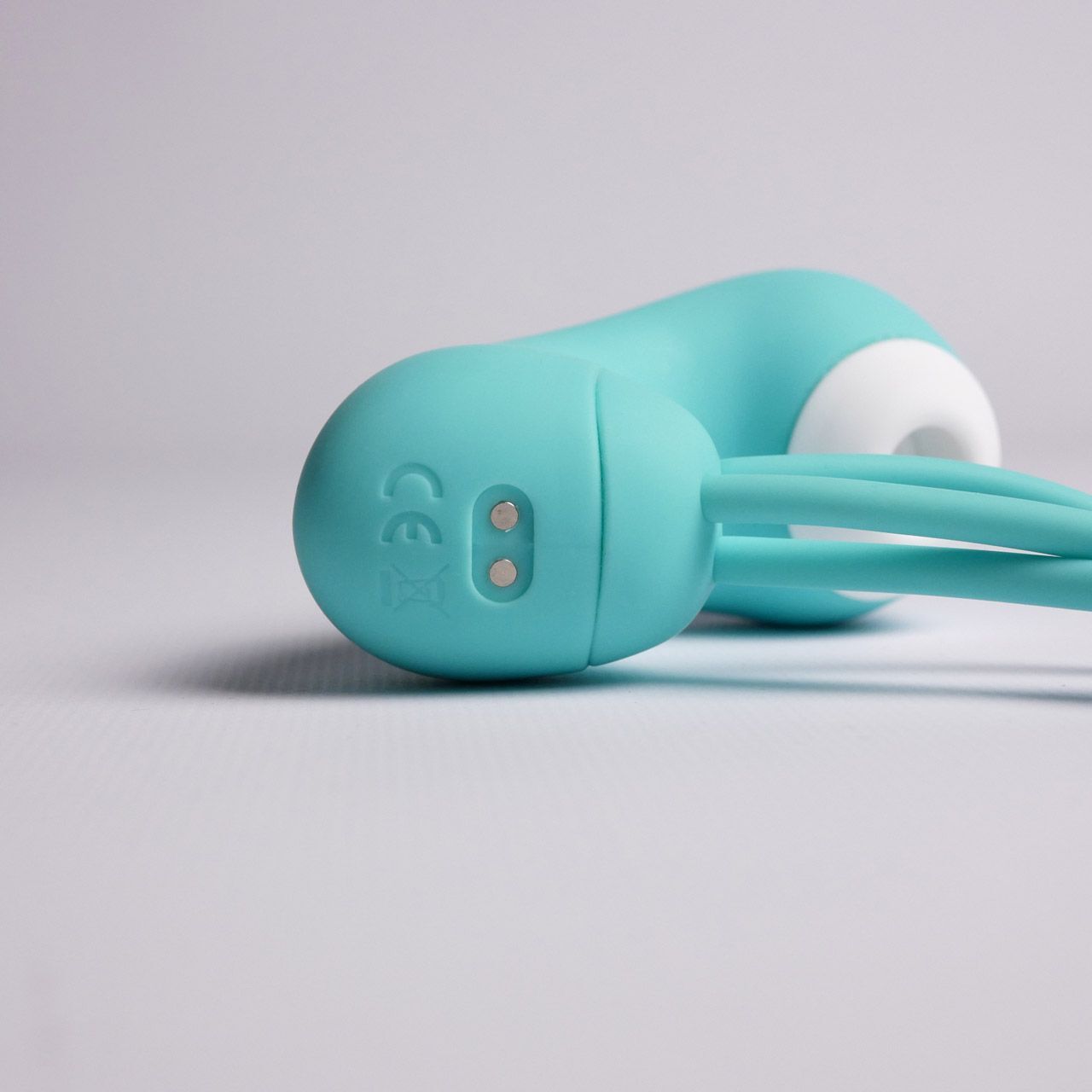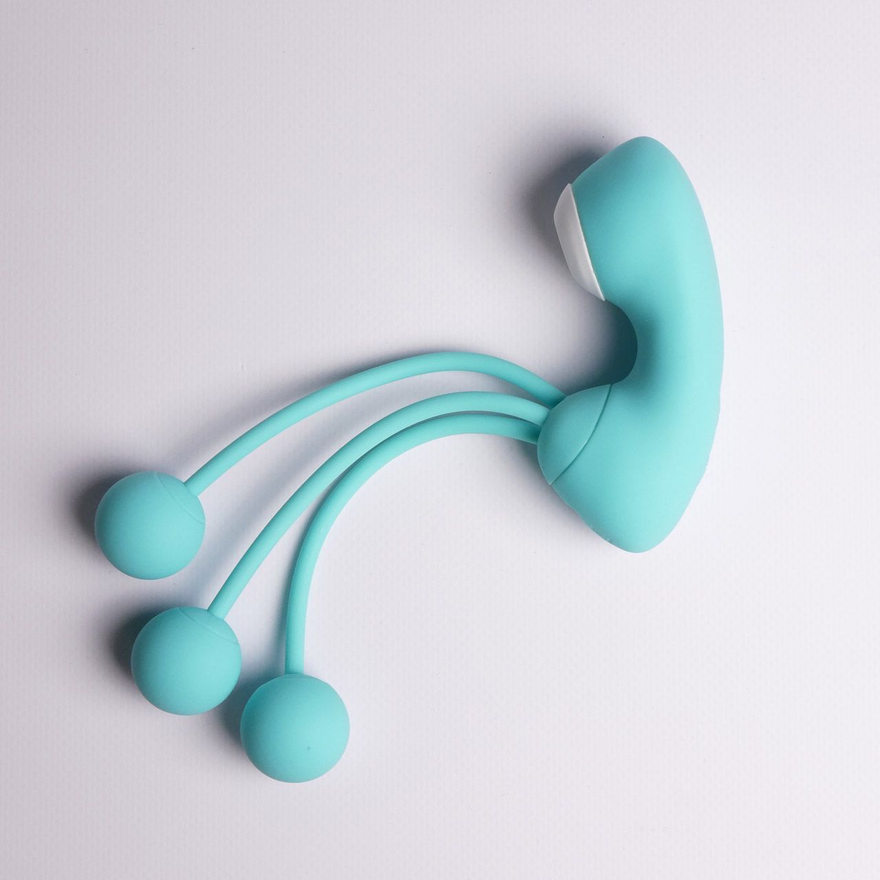 Бирюзовый вакуумный стимулятор клитора с вагинальными виброшариками