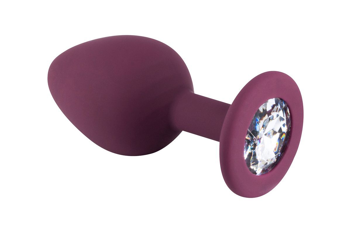 Бордовая средняя силиконовая пробка с прозрачным кристаллом