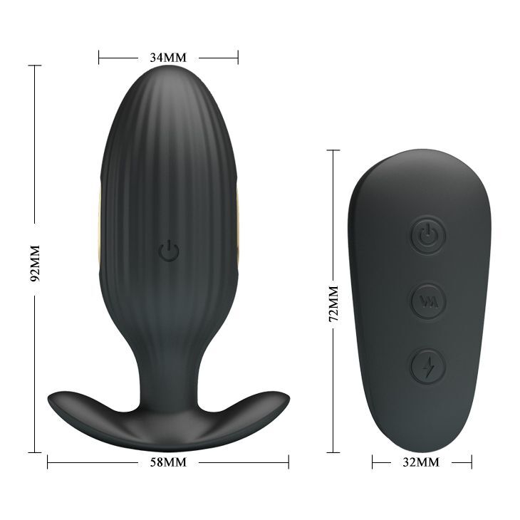 Черная анальная вибропробка с электростимуляцией и пультом ДУ Royal Pleasure - 9,2 см.