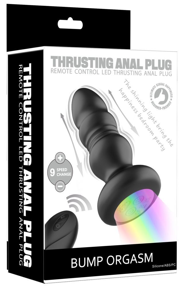Черная анальная вибропробка с фрикционным механизмом и LED-подсветкой - 12,5 см.