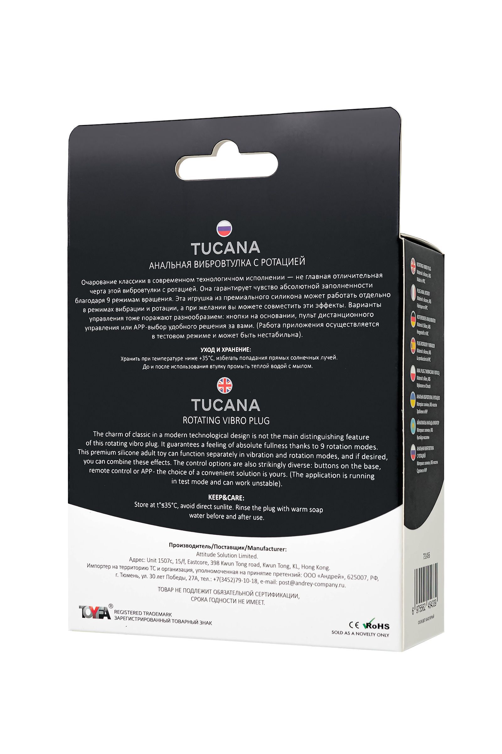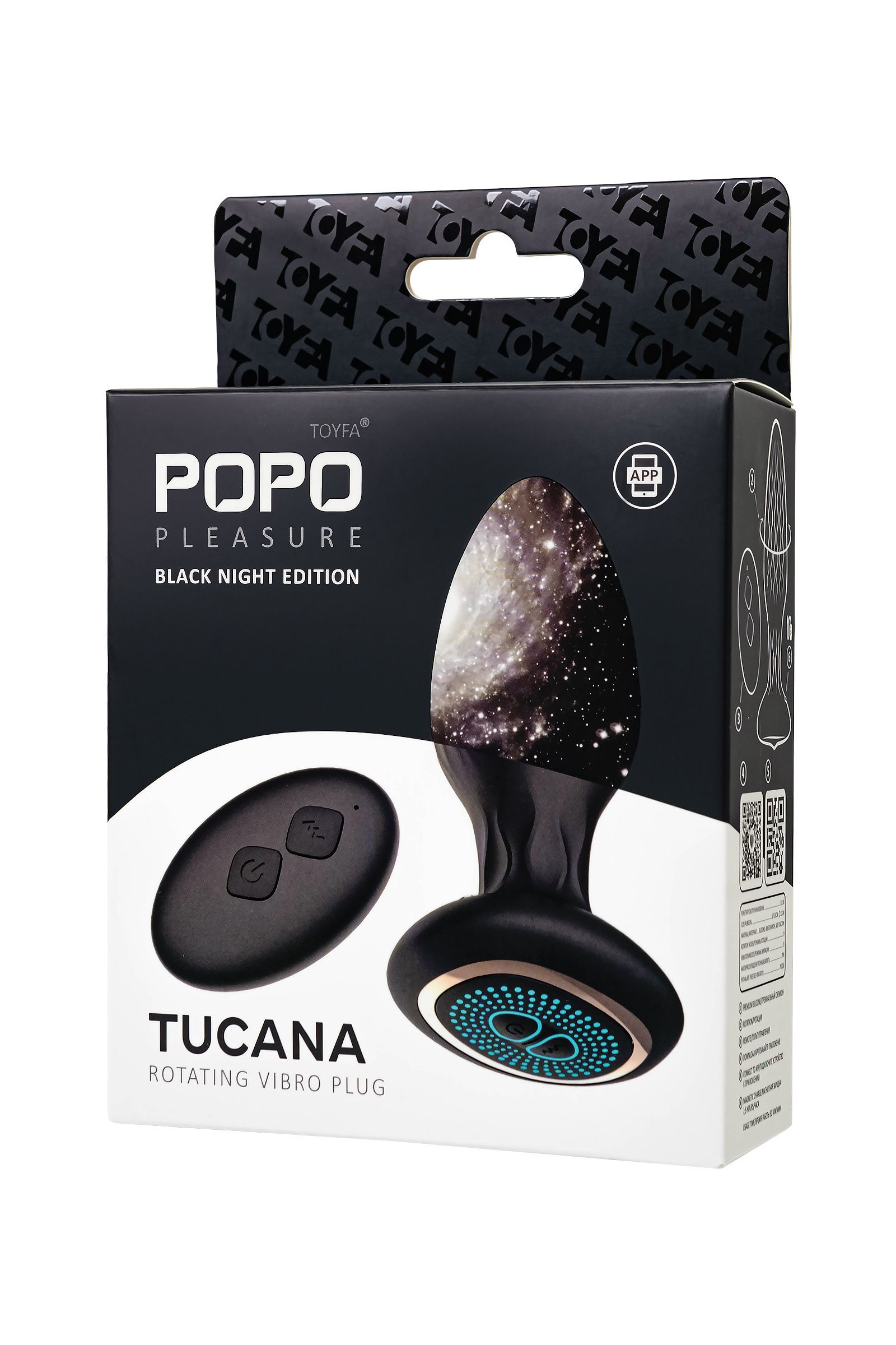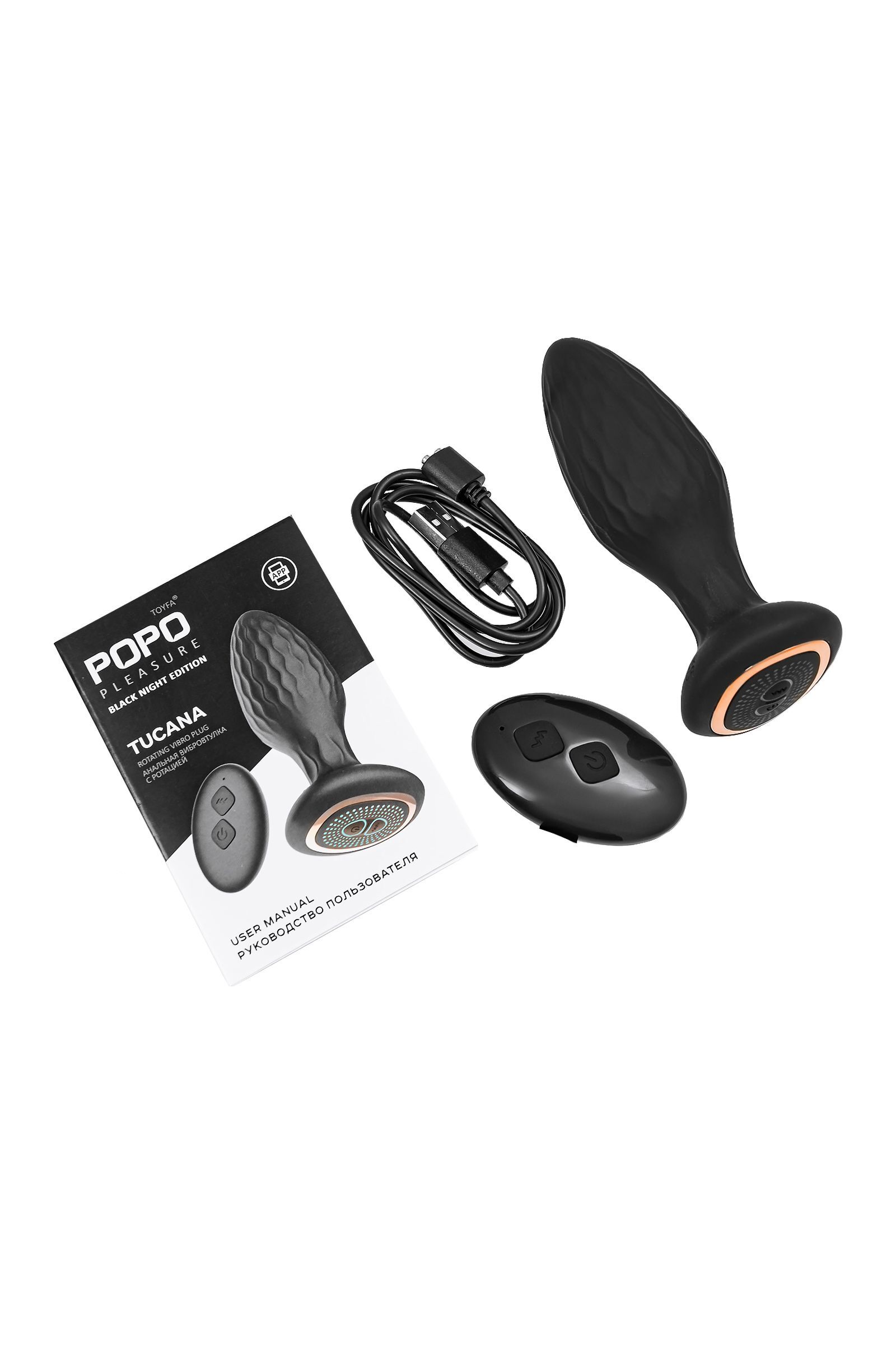 Черная анальная вибровтулка Tucana с ротацией и управлением через приложение - 12 см.