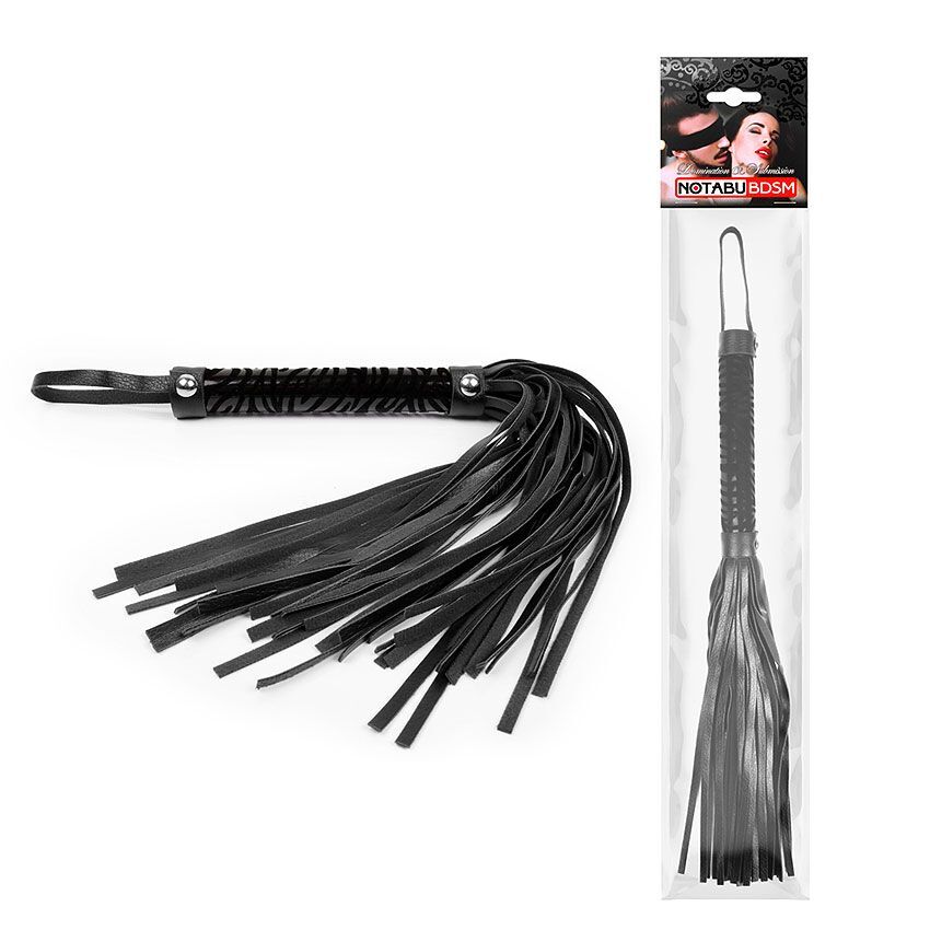 Черная гладкая плеть-флоггер с ручкой - 40 см.