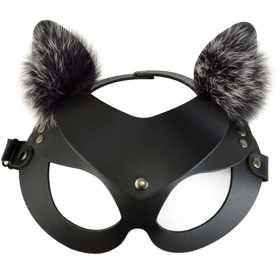 Черная кожаная маска Кошечка с мехом