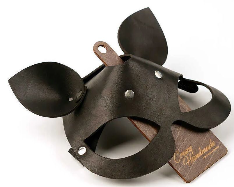 Черная кожаная маска Кошка с маленькими ушками