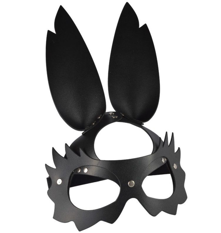 Черная кожаная маска Зайка с длинными ушками