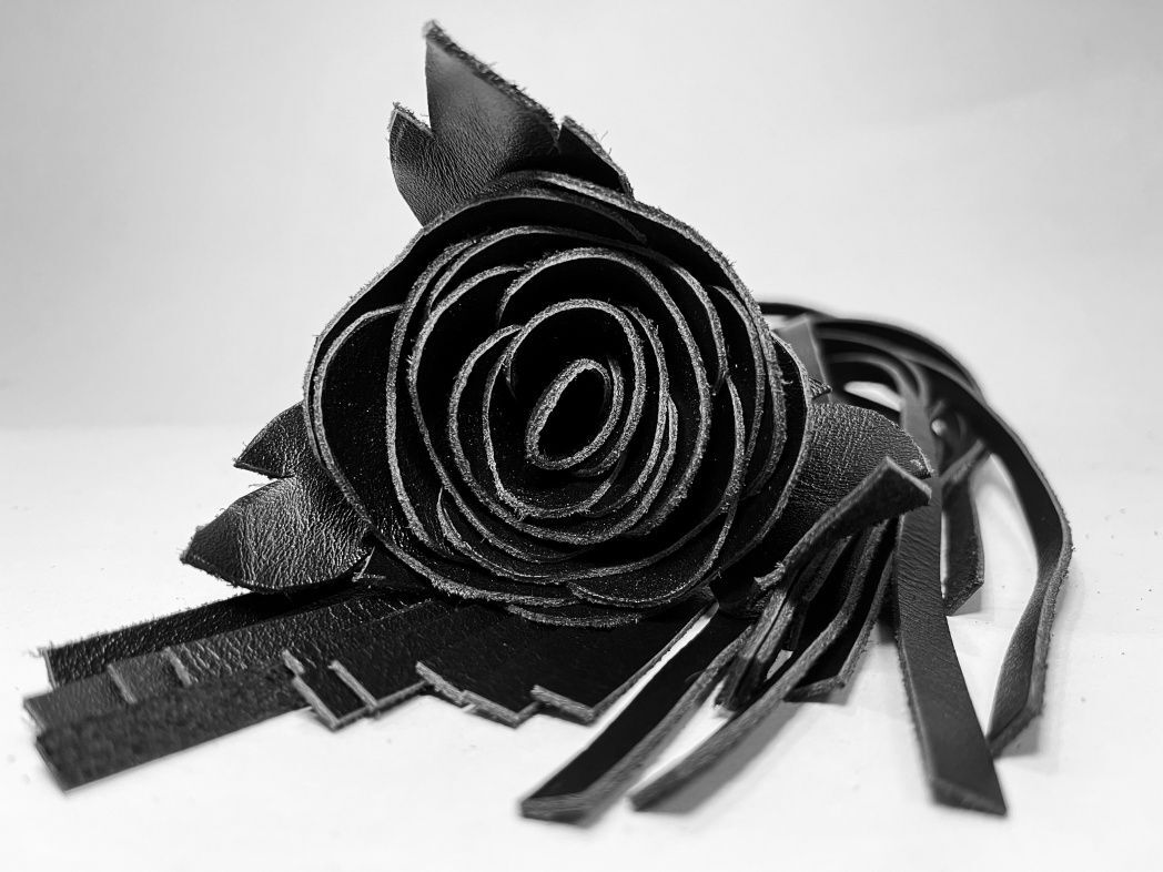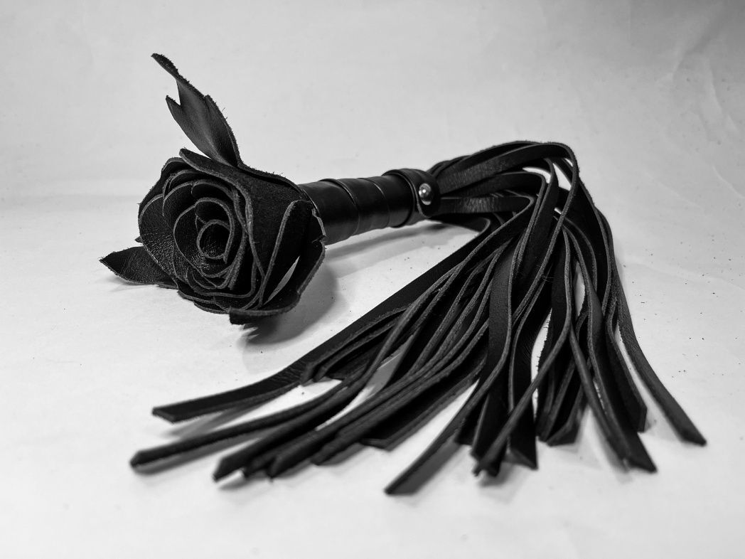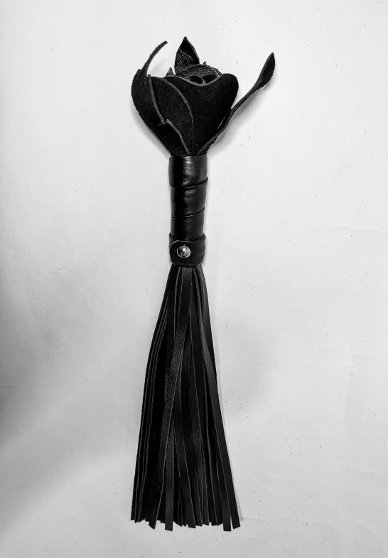 Черная кожаная плеть с розой в рукояти - 40 см.