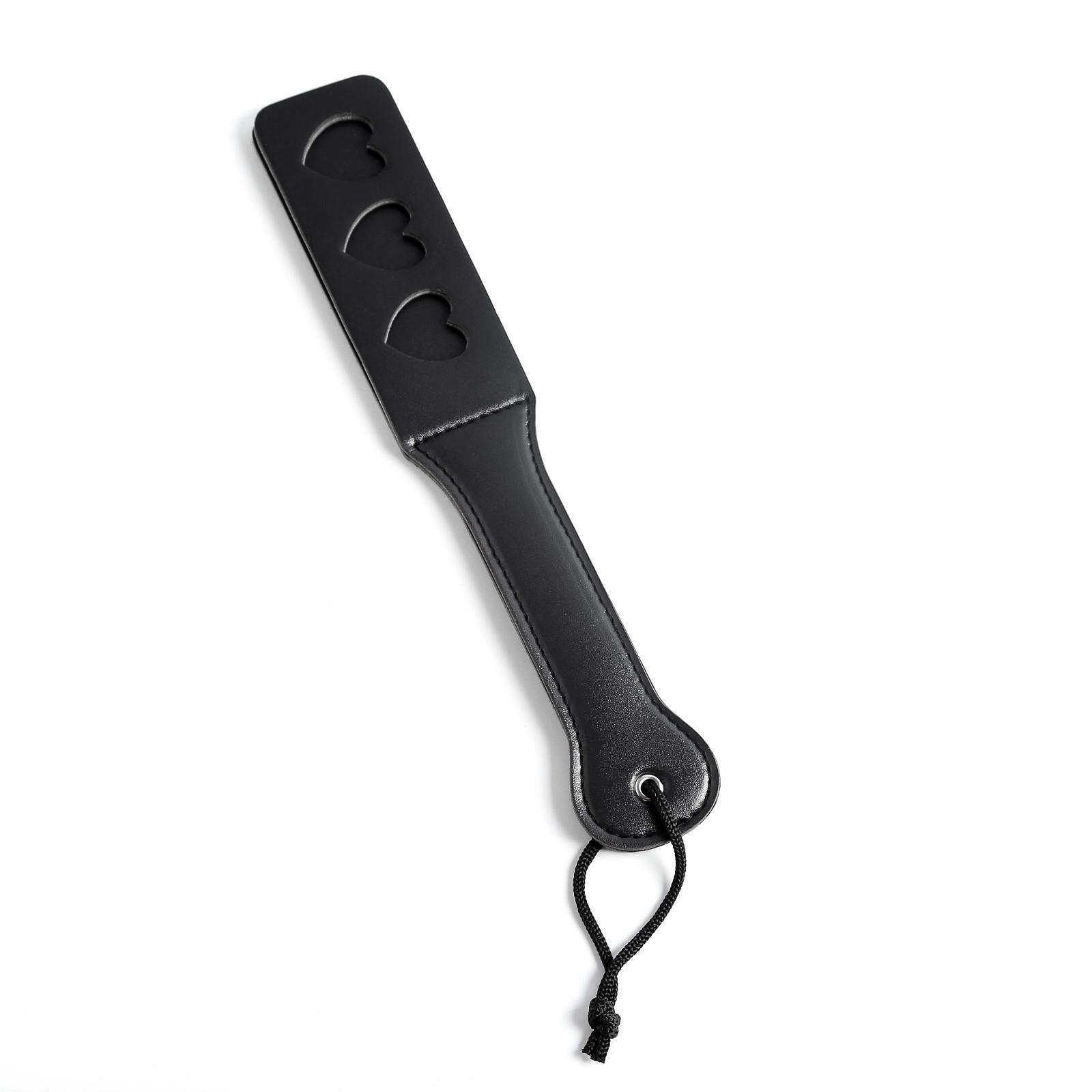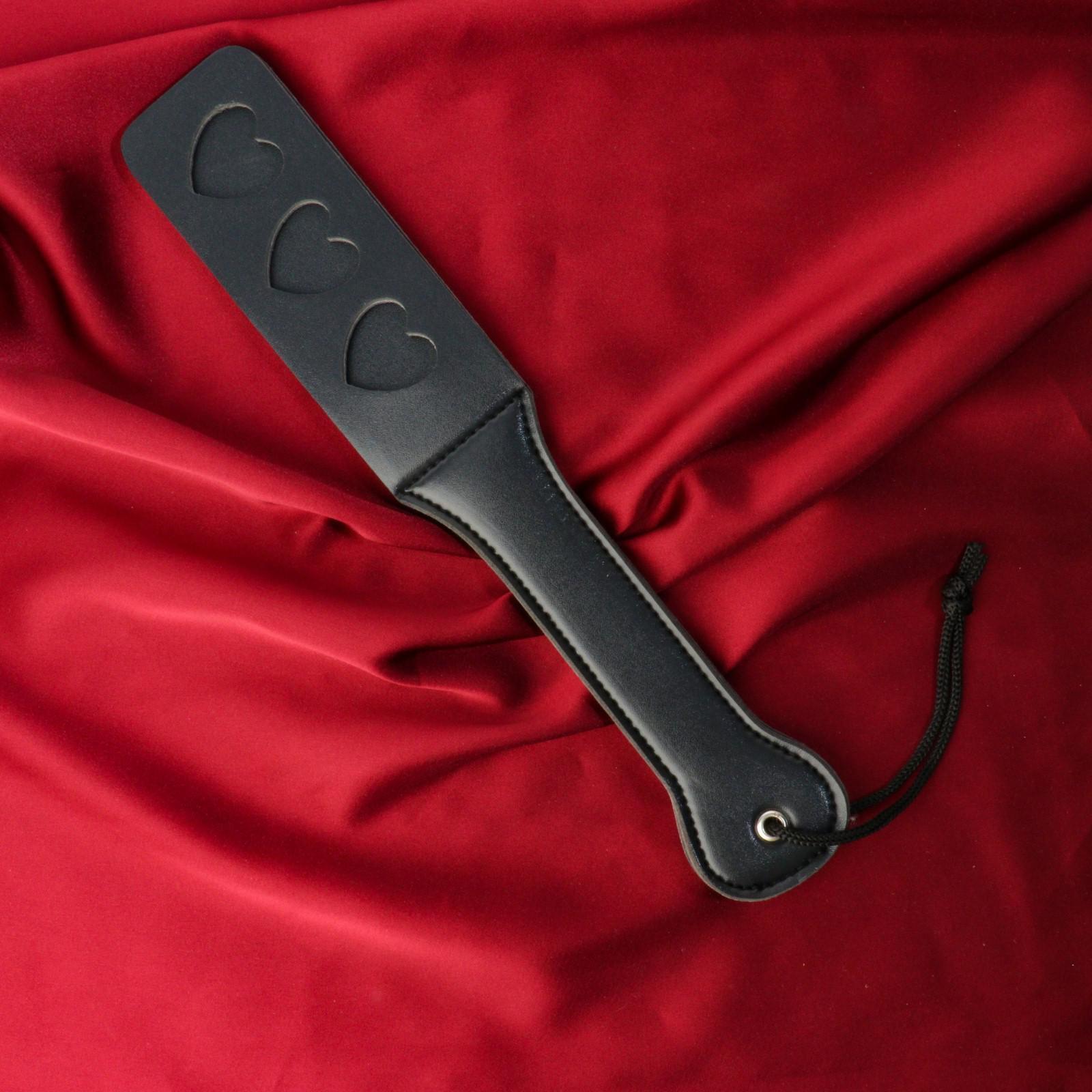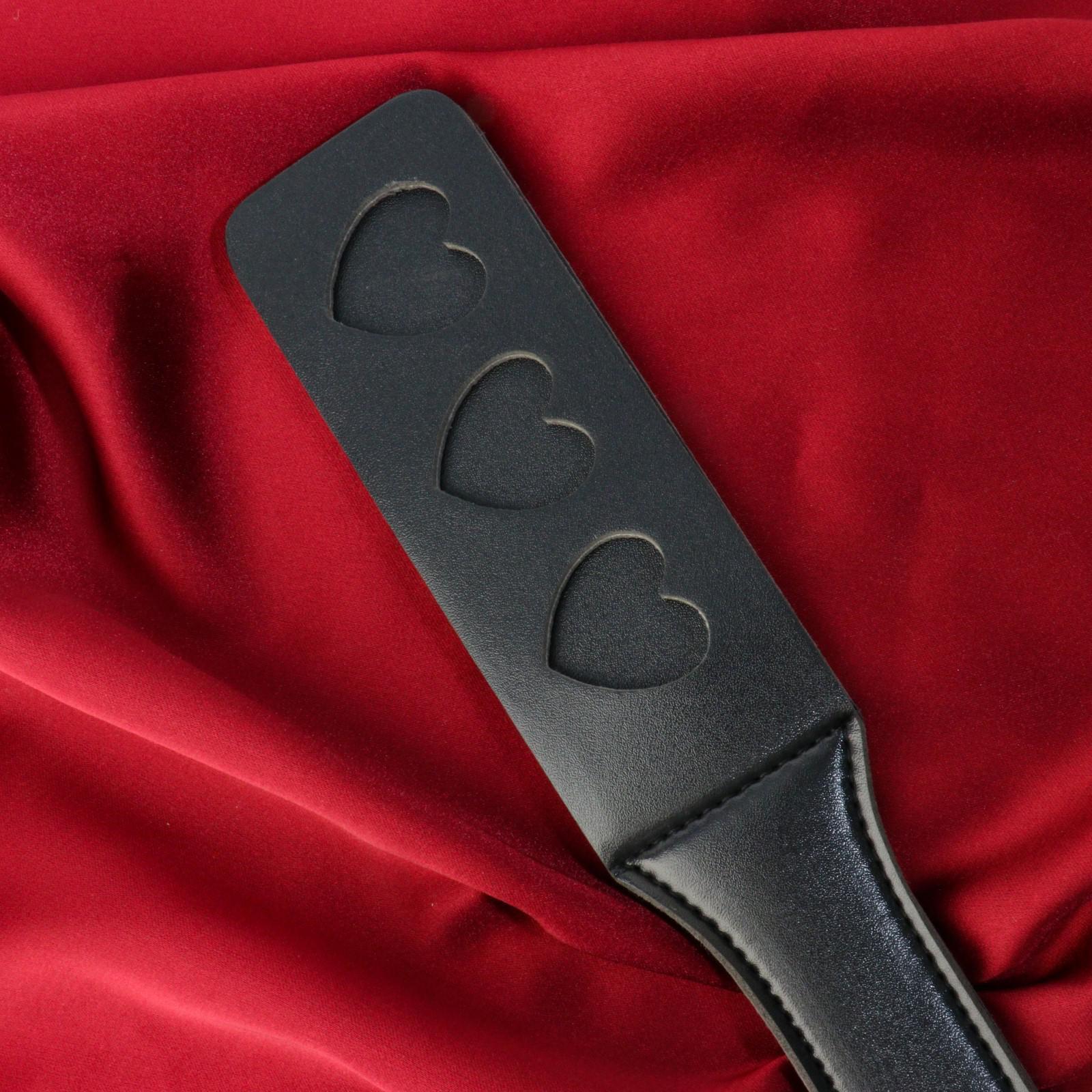 Черная кожаная шлепалка Сердечки - 32 см.