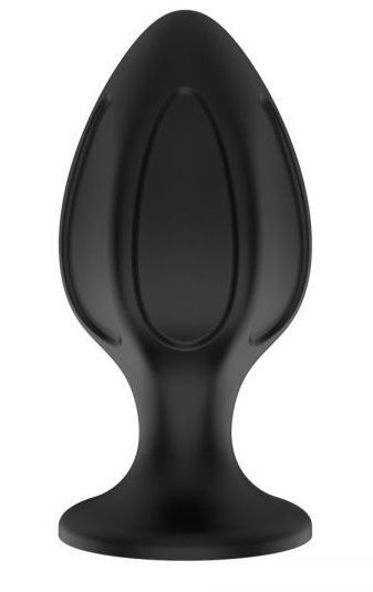Черная малая силиконовая анальная пробка с вертикальными бороздками