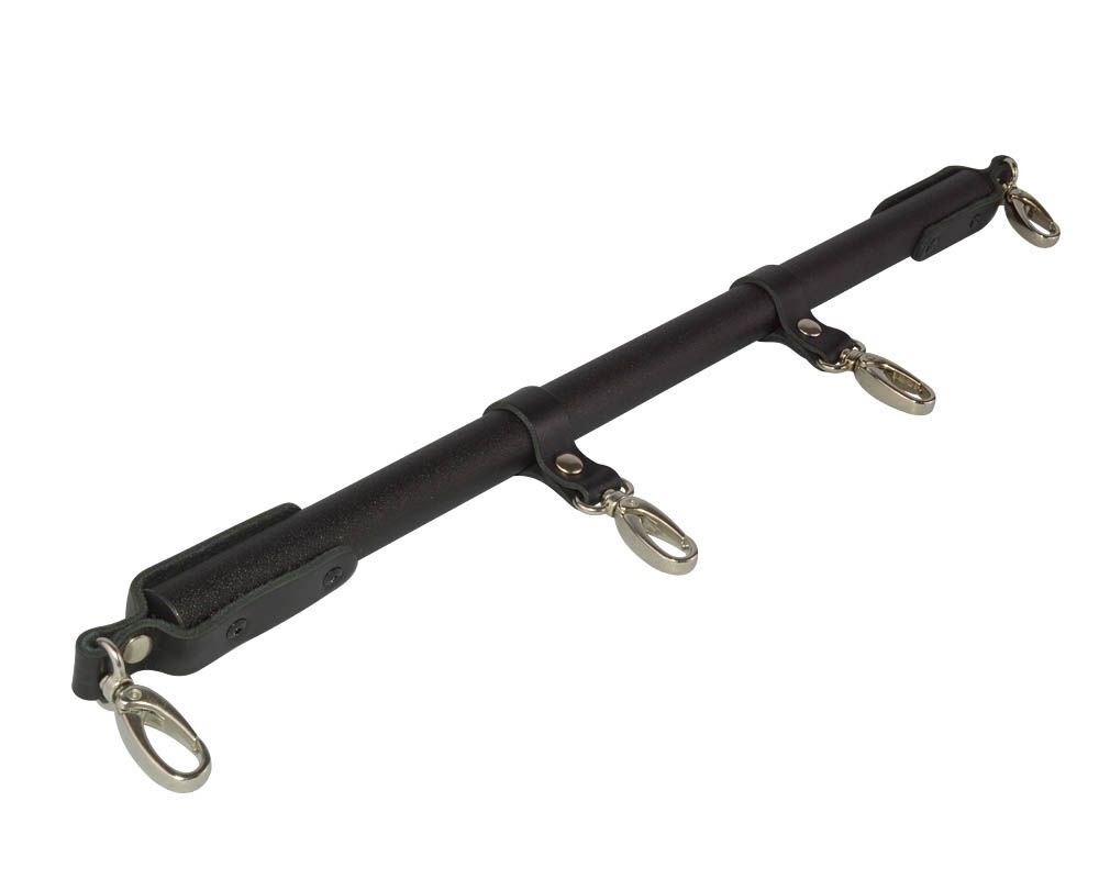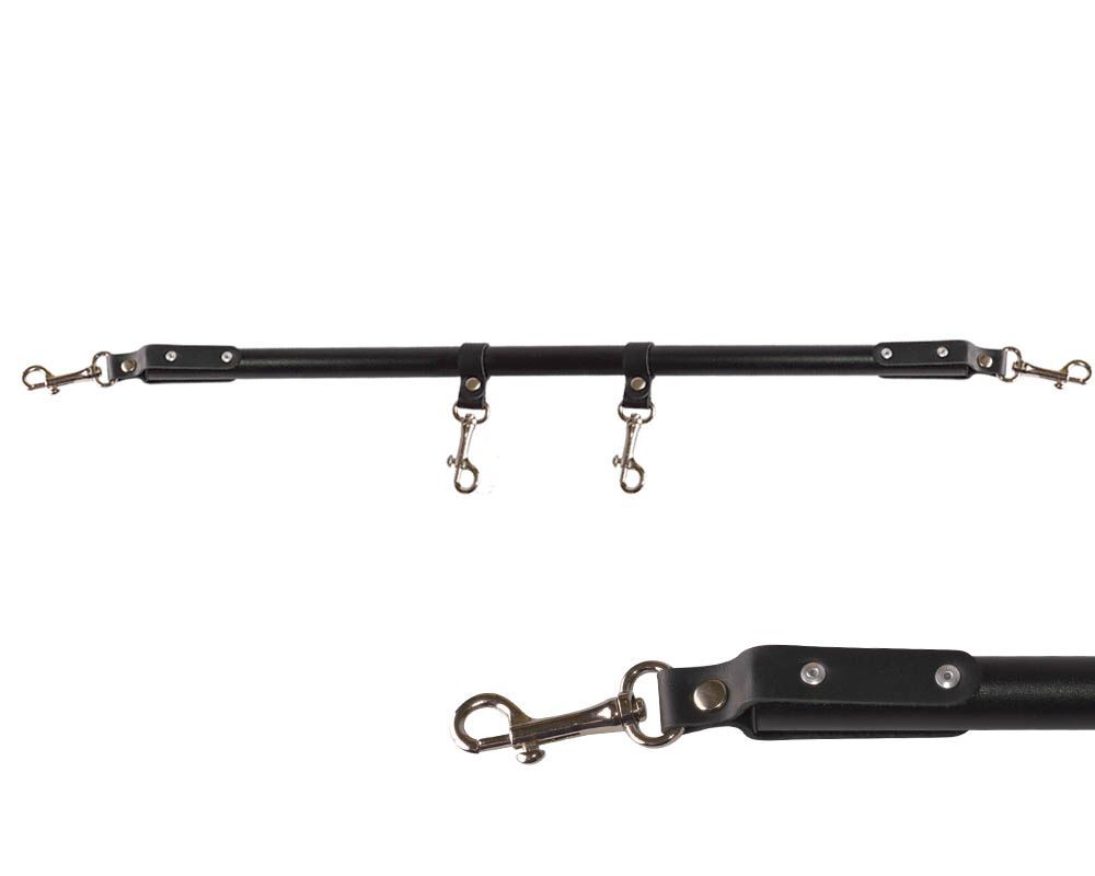 Черная металлическая распорка с кожаными ремешками и карабинами - 50 см.