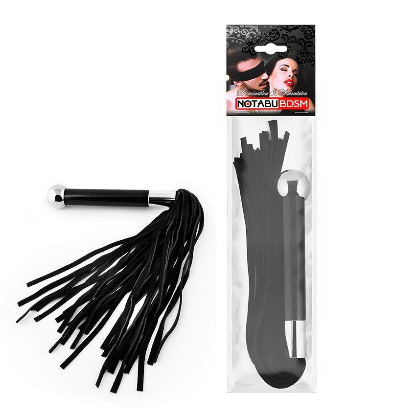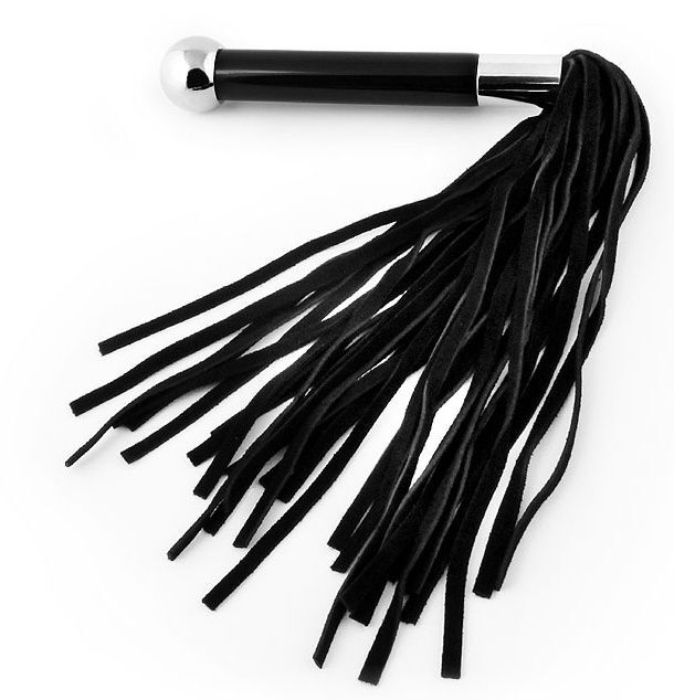 Черная многохвостая плетка с круглой ручкой с шариком на конце - 39 см.
