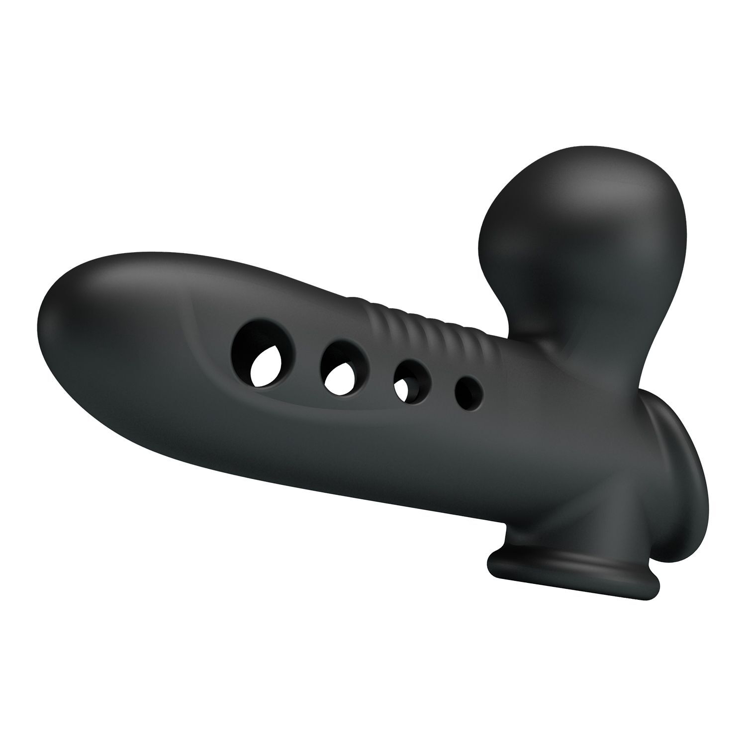 Черная насадка на пенис с эффектом расширения Crane - 18,4 см.