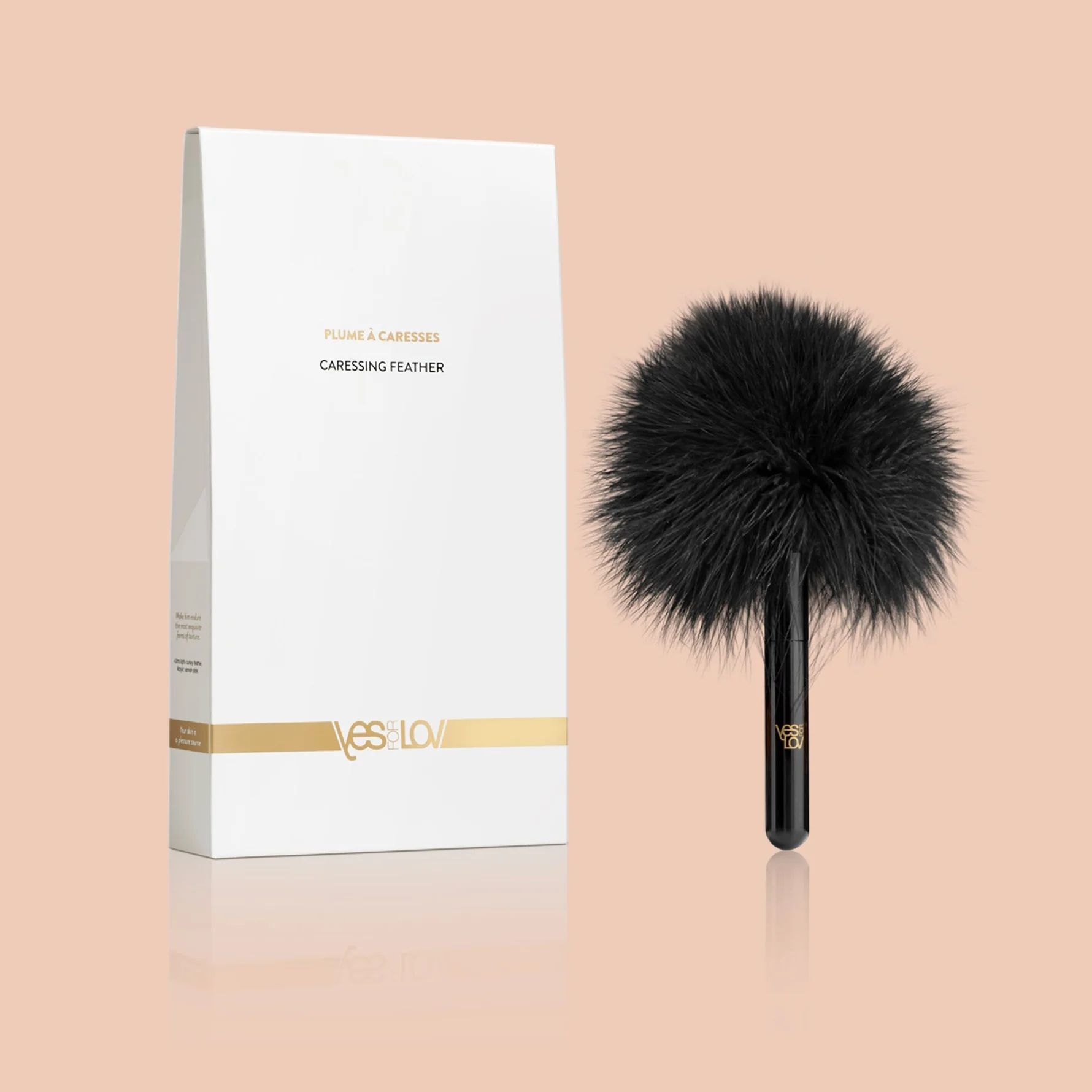 Черная перьевая кисточка с гладкой ручкой Caressing Feather