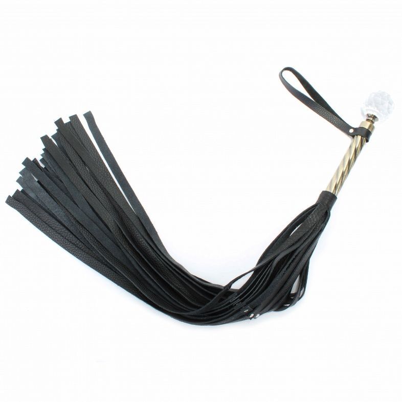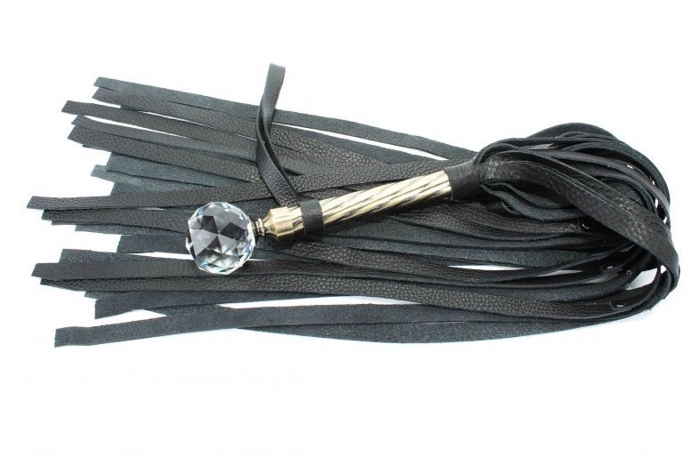 Черная плеть с кристаллом на металлической ручке - 78 см.