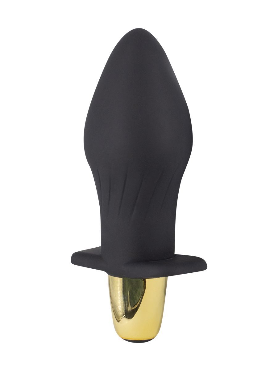 Черная силиконовая анальная пробка с вибрацией - 10,5 см.