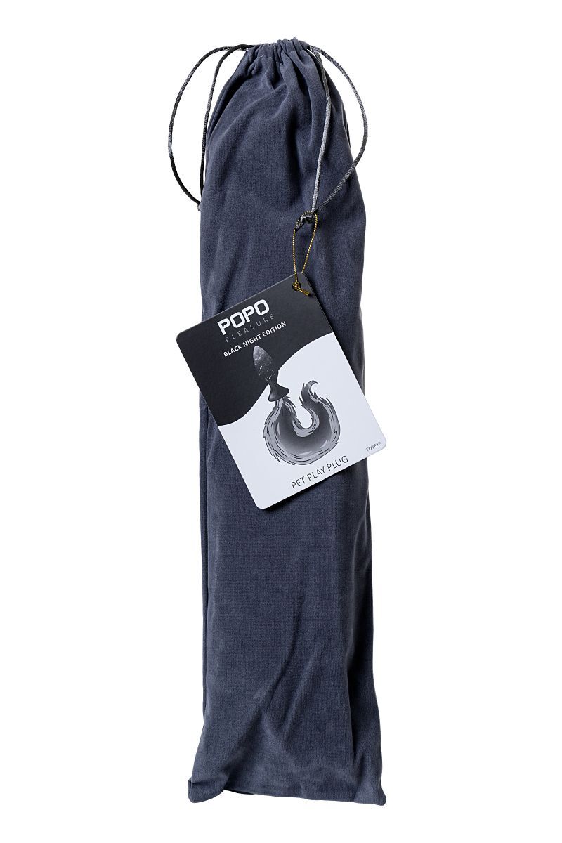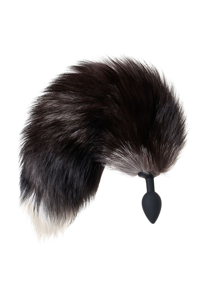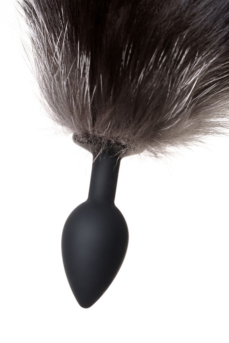 Черная силиконовая анальная втулка с хвостом чернобурой лисы - размер S