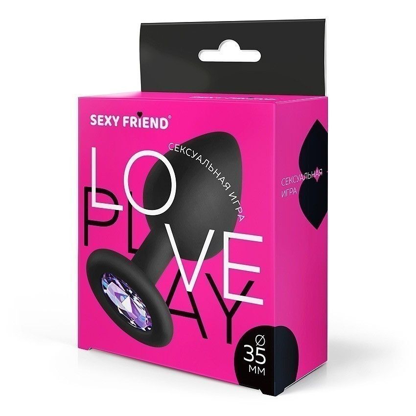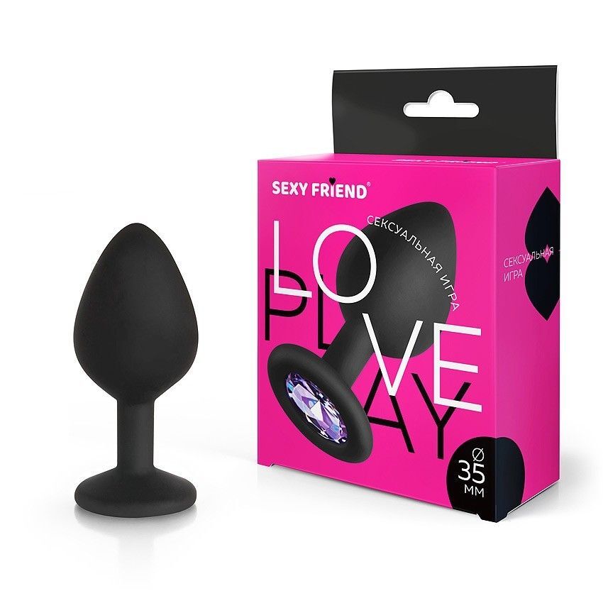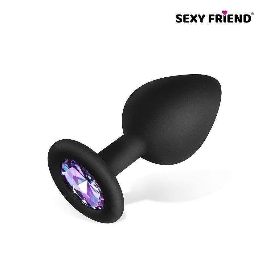 Черная силиконовая анальная втулка с сиреневым кристаллом - 8 см.