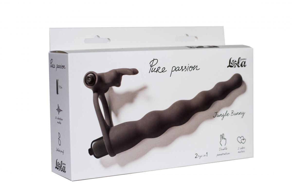 Черная вибронасадка для двойного проникновения Naughty Bunny - 17 см.