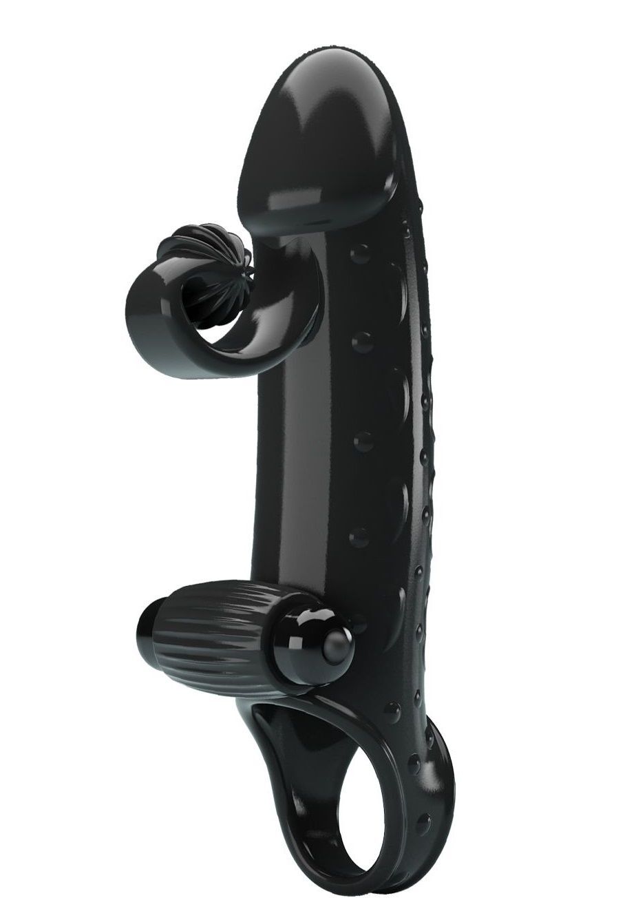 Черная вибронасадка на пенис с подхватом мошонки - 20 см.