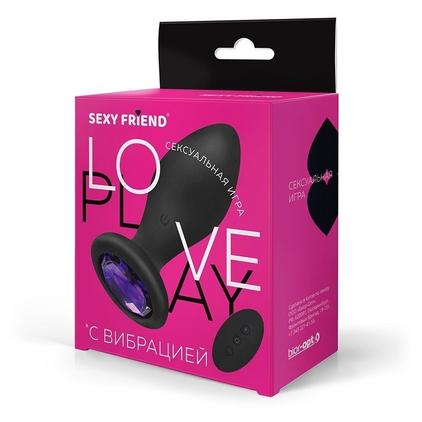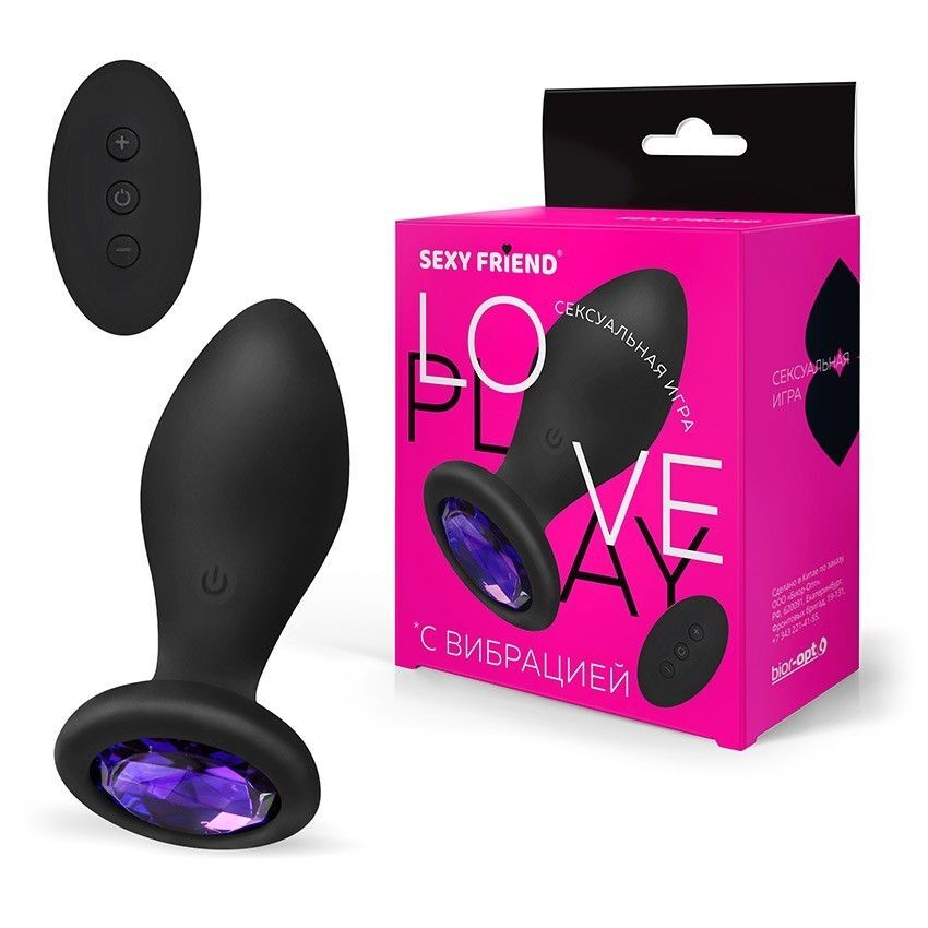Черная вибровтулка с фиолетовым кристаллом и пультом ДУ - 8,5 см.
