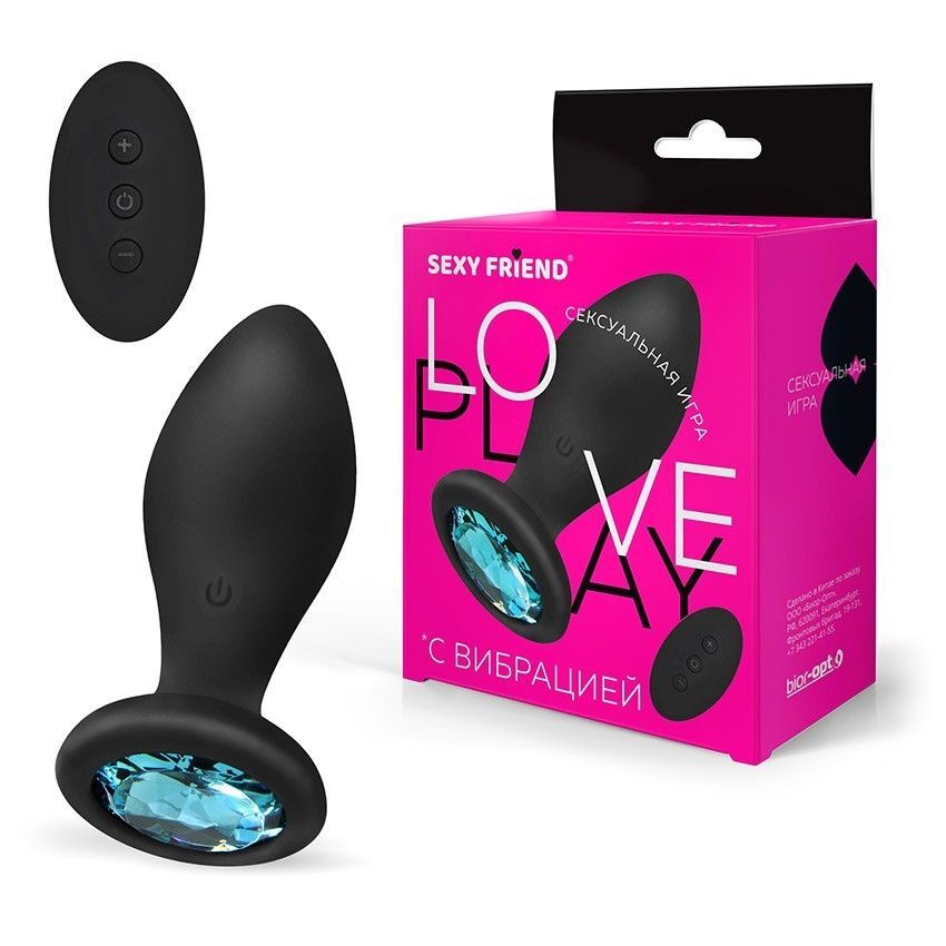 Черная вибровтулка с голубым кристаллом и пультом ДУ - 8,5 см.