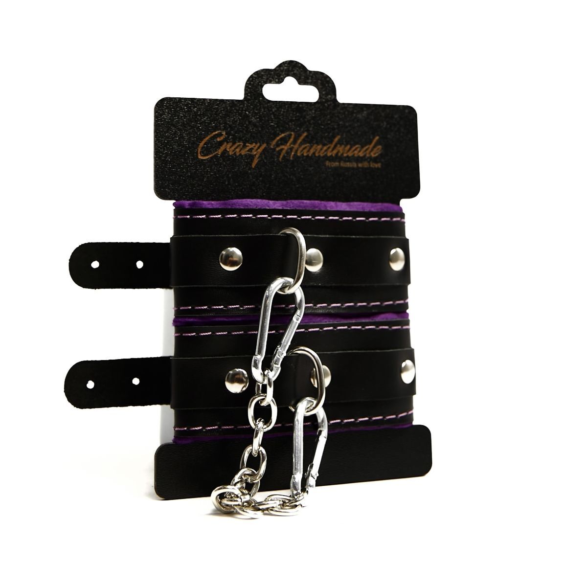 Черно-фиолетовые скругленные наручники с мягкой подкладкой