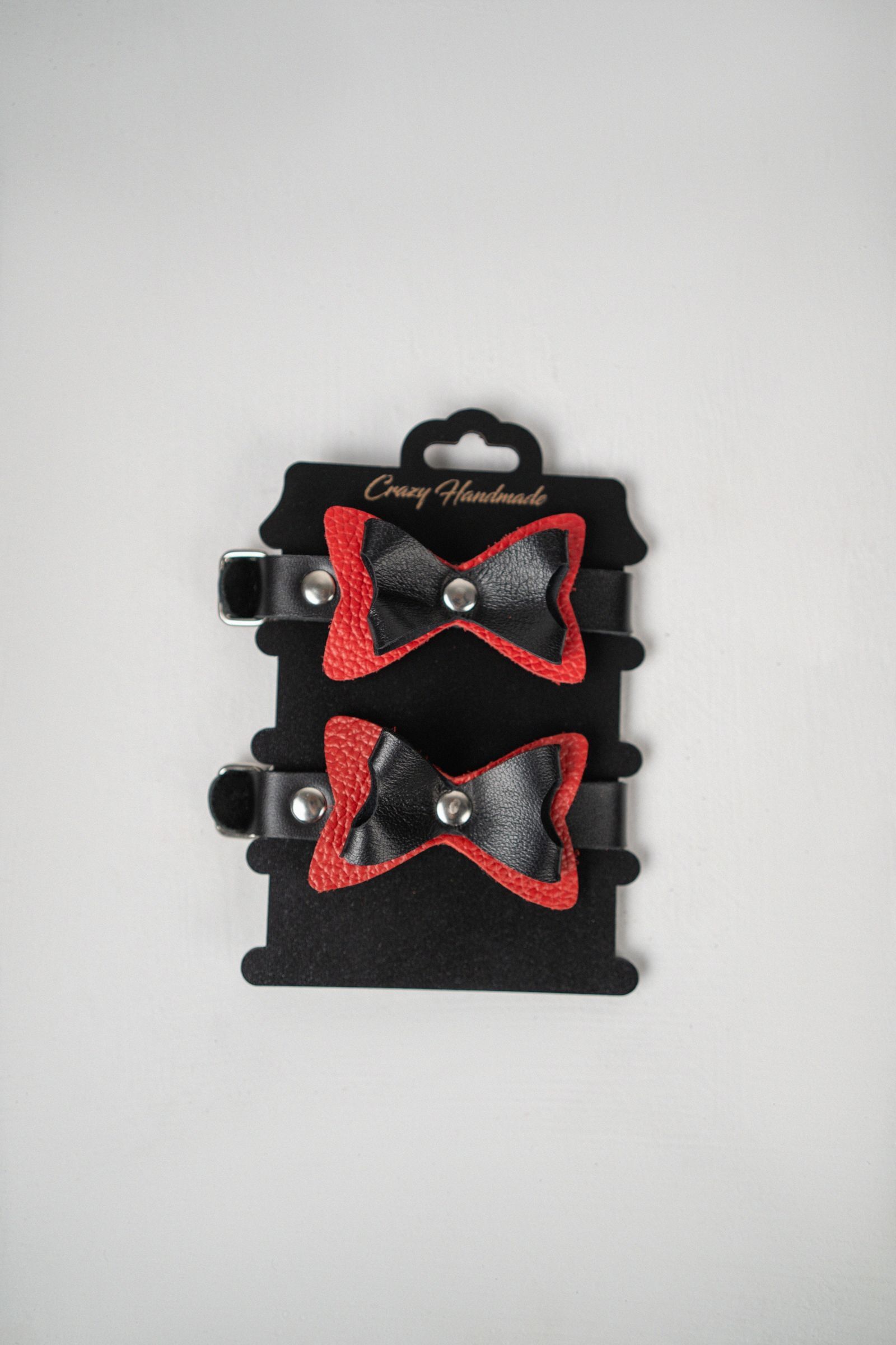 Черно-красные кожаные наручники с бантиками