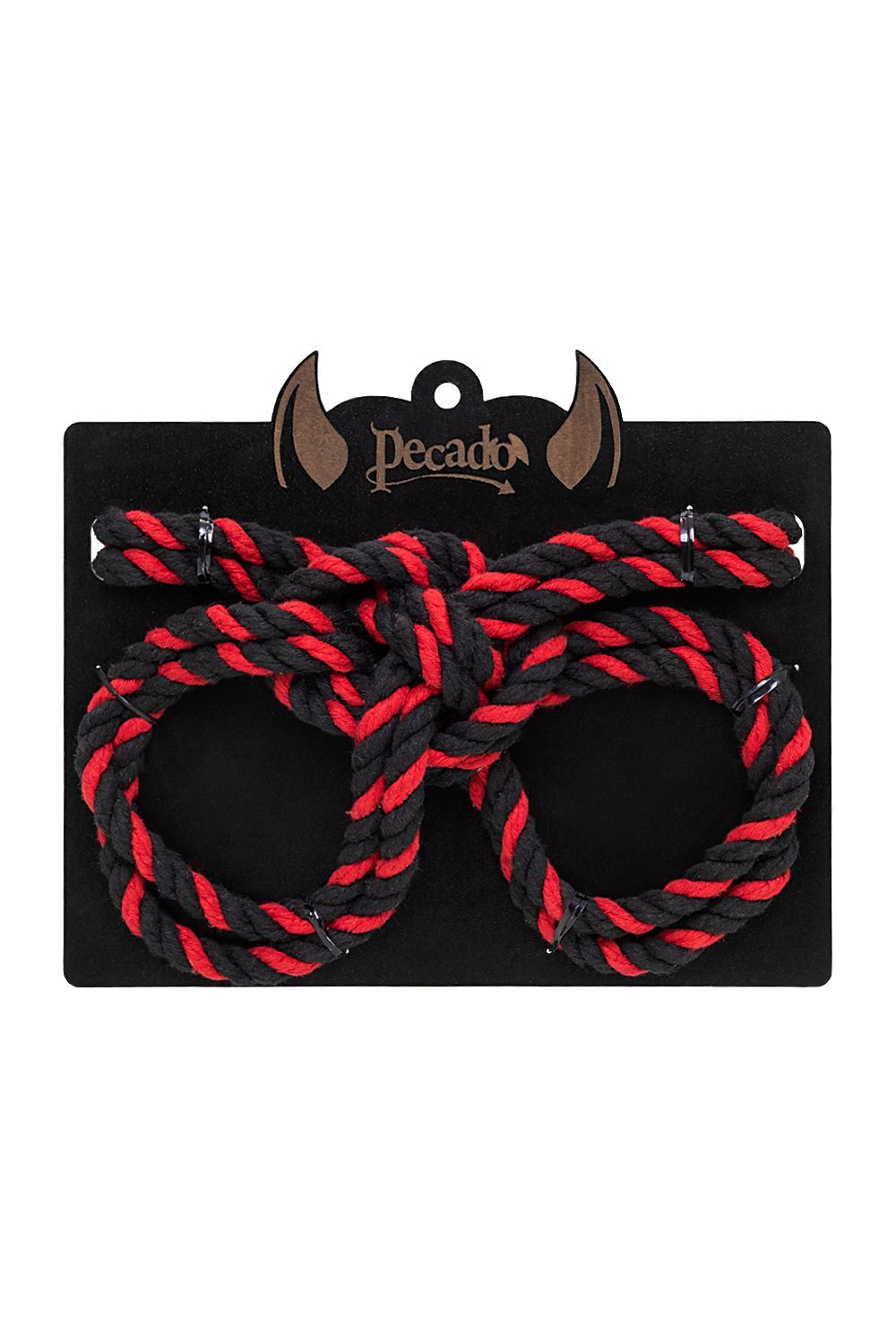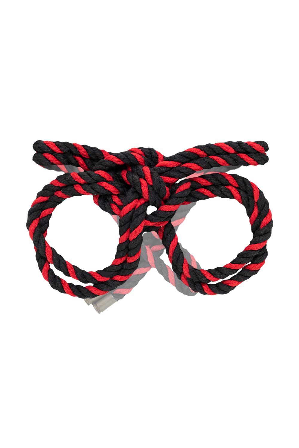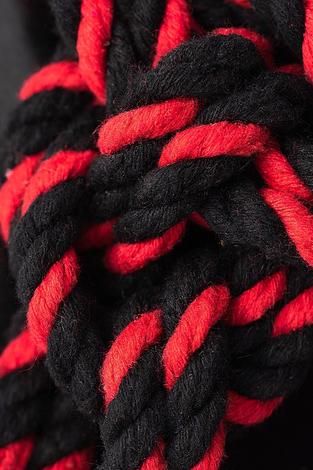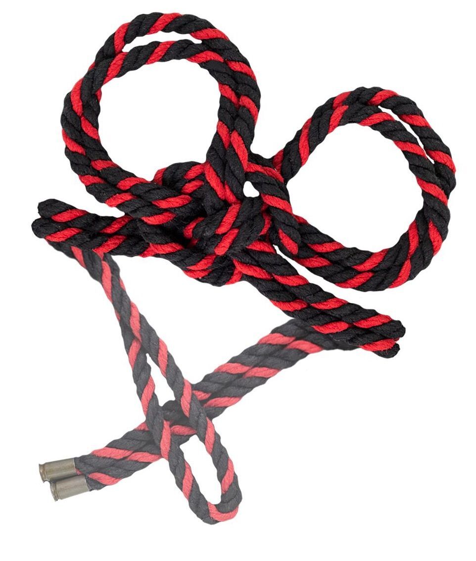 Черно-красные наручники-оковы «Узел-Альфа» из хлопковой веревки