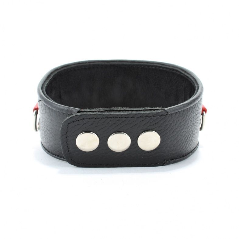 Черно-красный кожаный ошейник с металлическими клепками