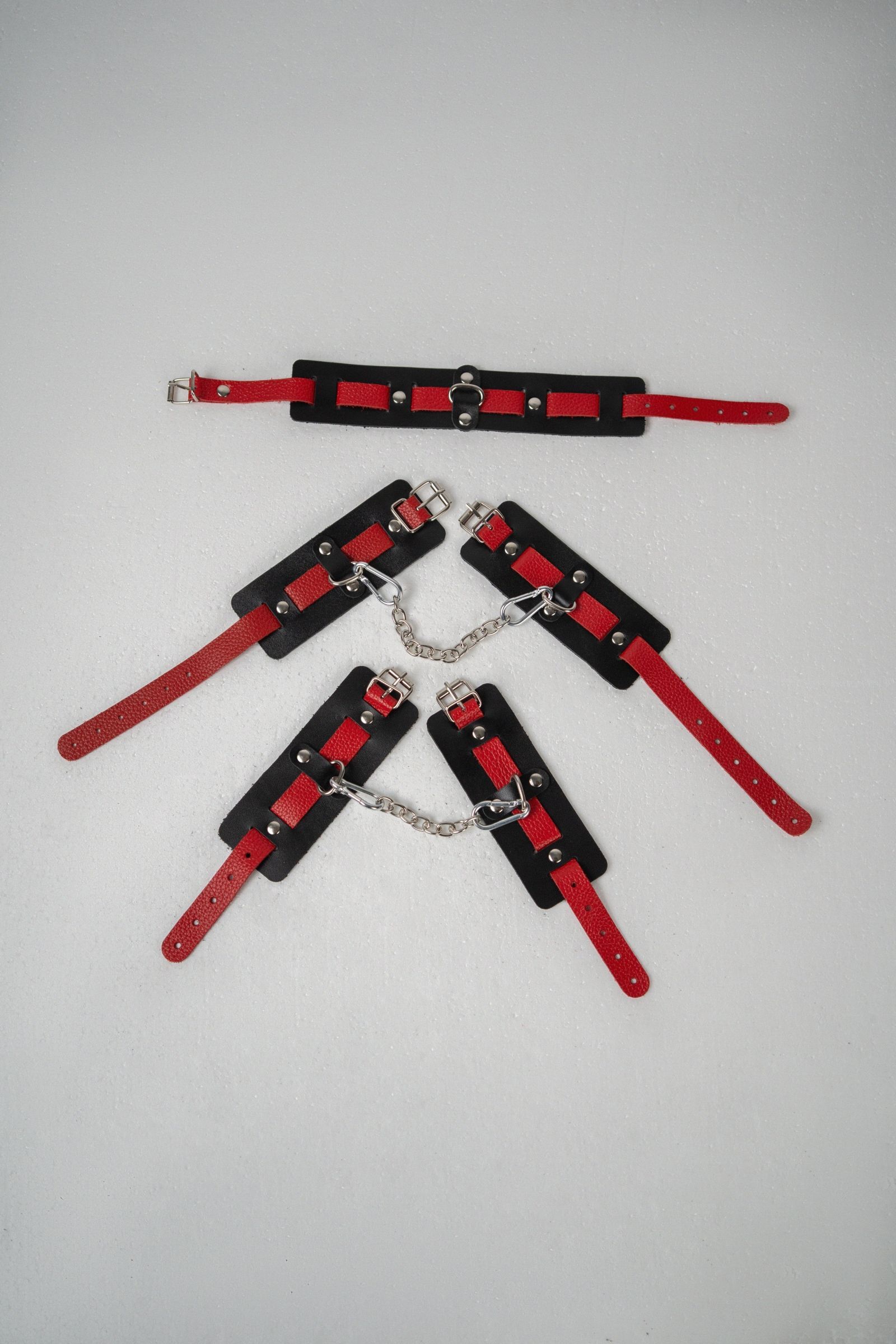 Черно-красный набор фиксаций: наручники, оковы и ошейник