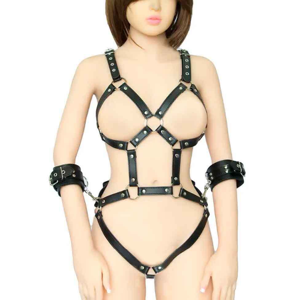 Черное боди-портупея с пристегивающимися наручниками