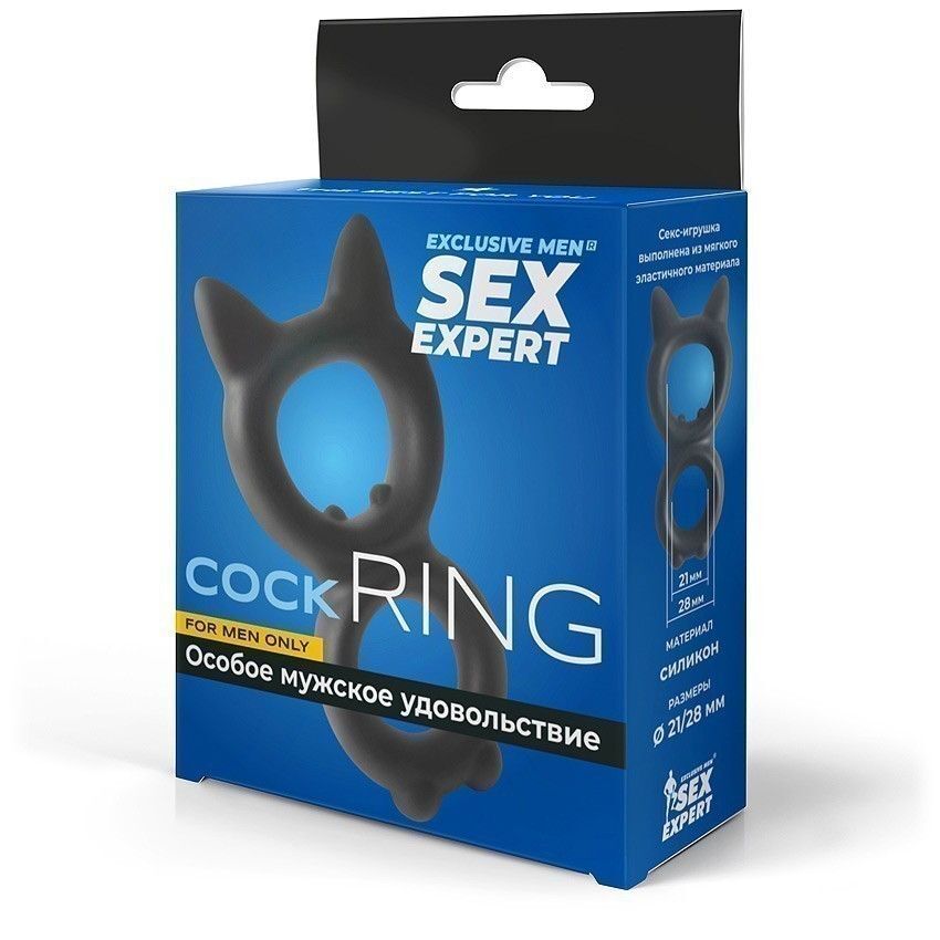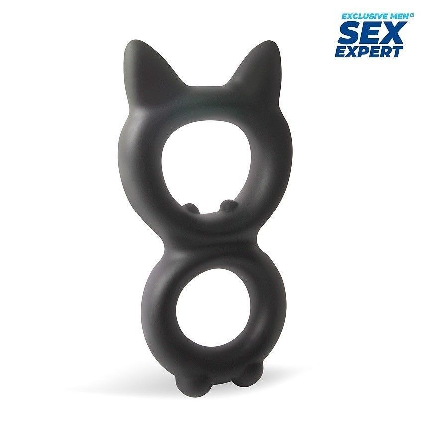 Черное двойное эрекционное кольцо с кошачьими ушками