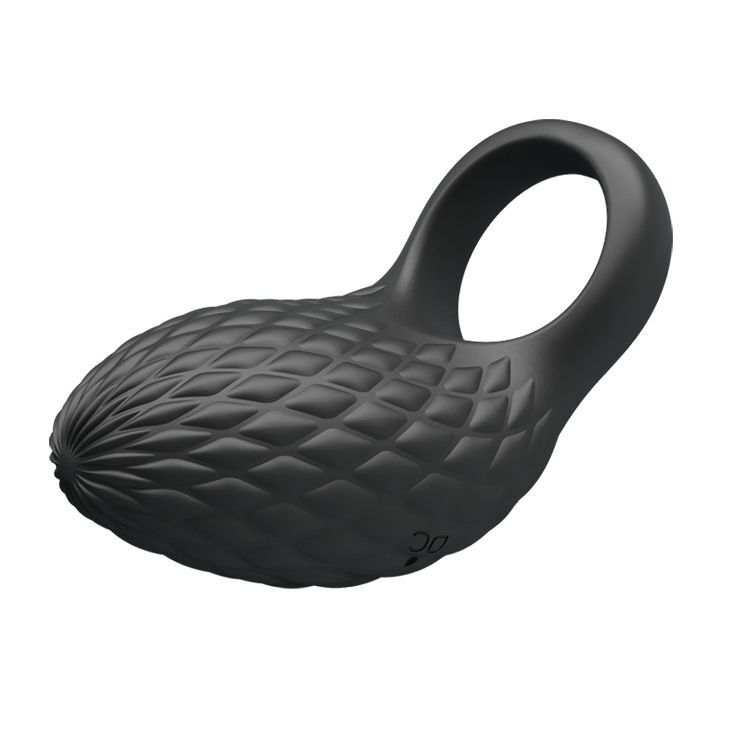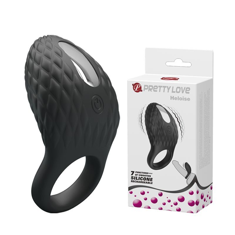 Черное эрекционное виброкольцо с рельефным дизайном Heloise