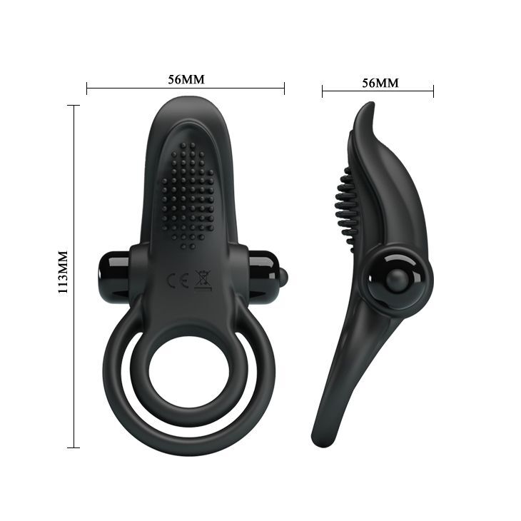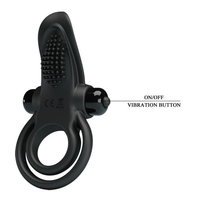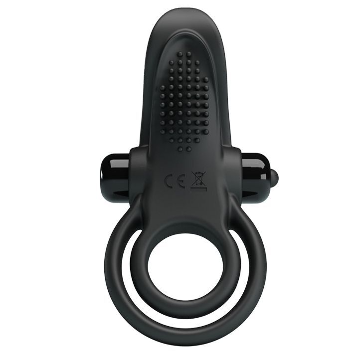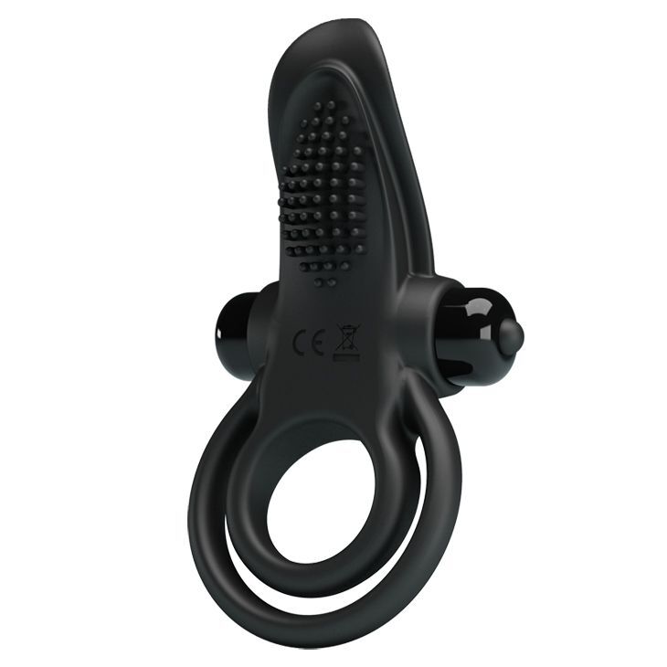 Черное силиконовое эрекционное кольцо с вибрацией и подхватом мошонки