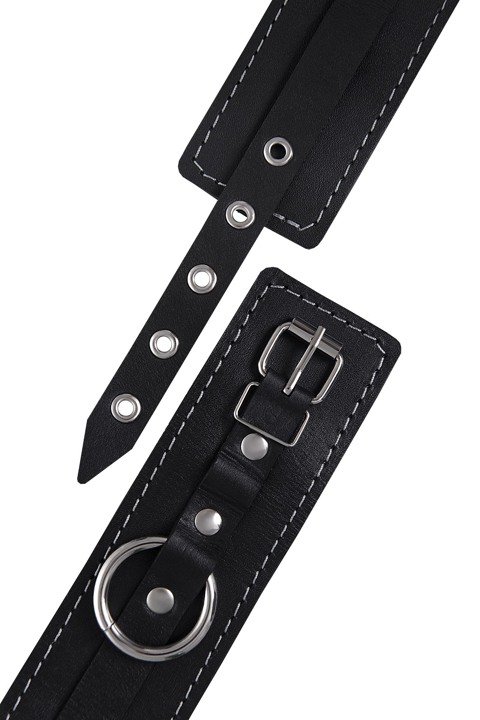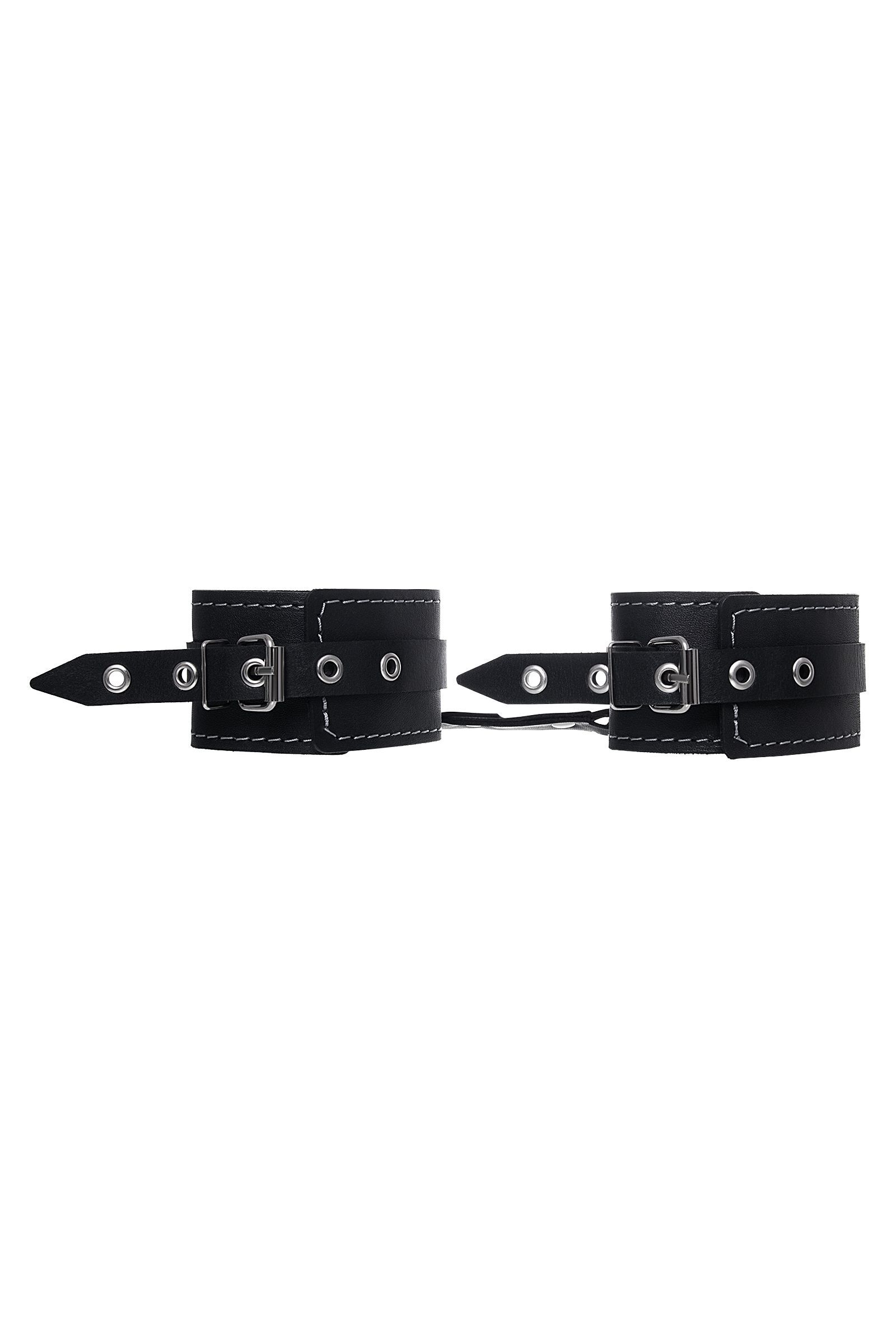 Черные двухслойные кожаные оковы с белой строчкой