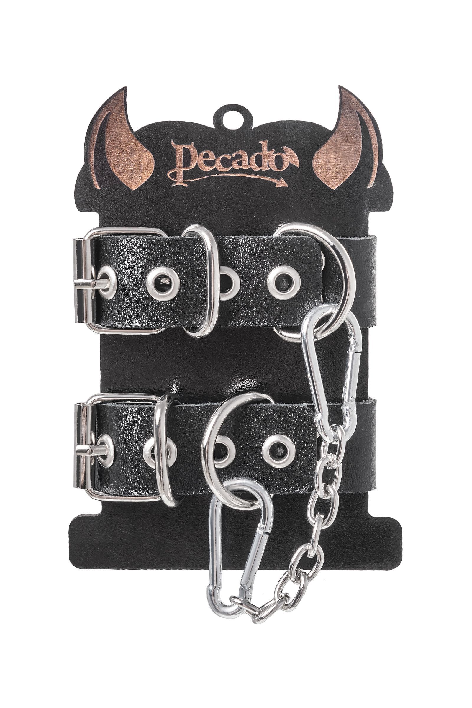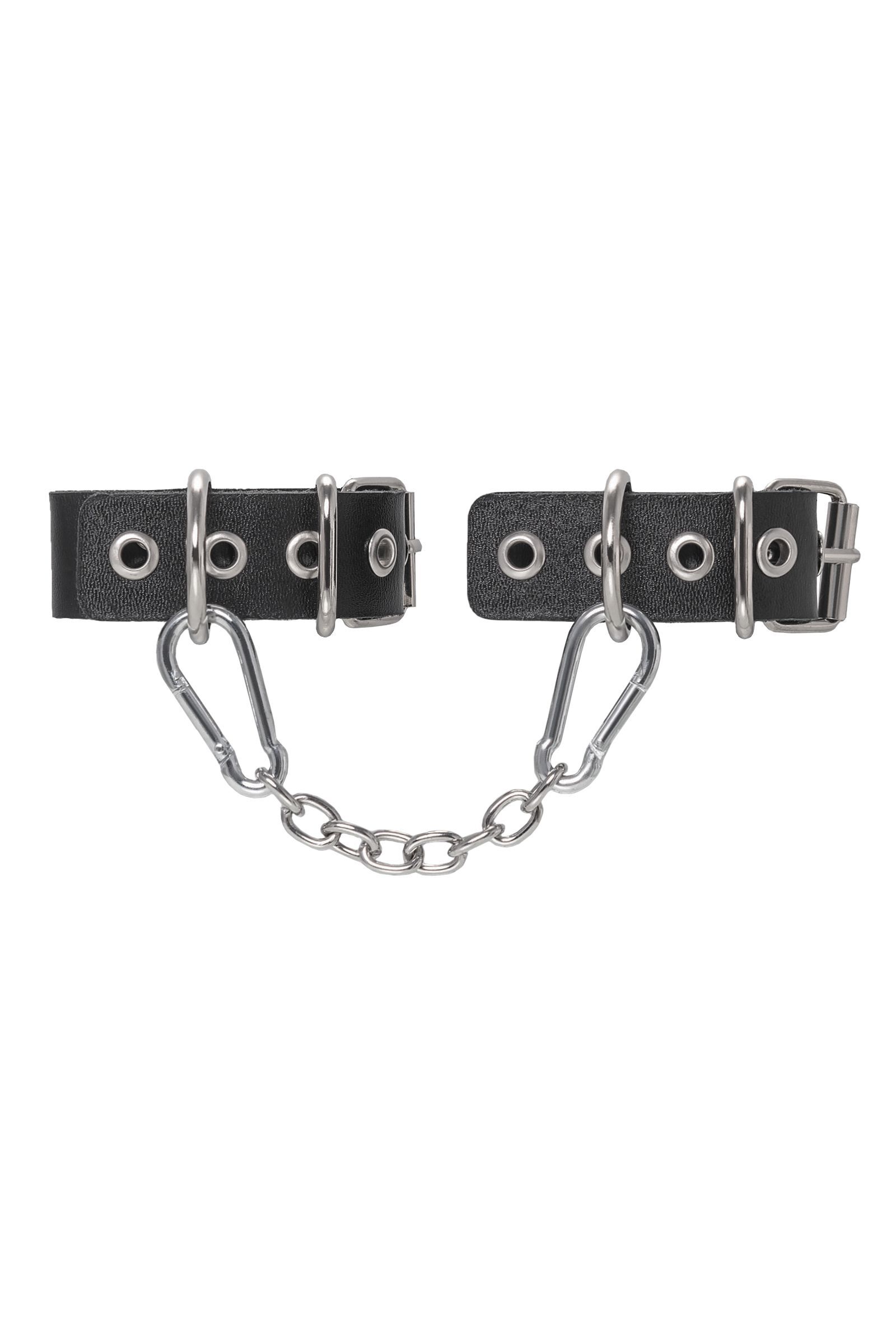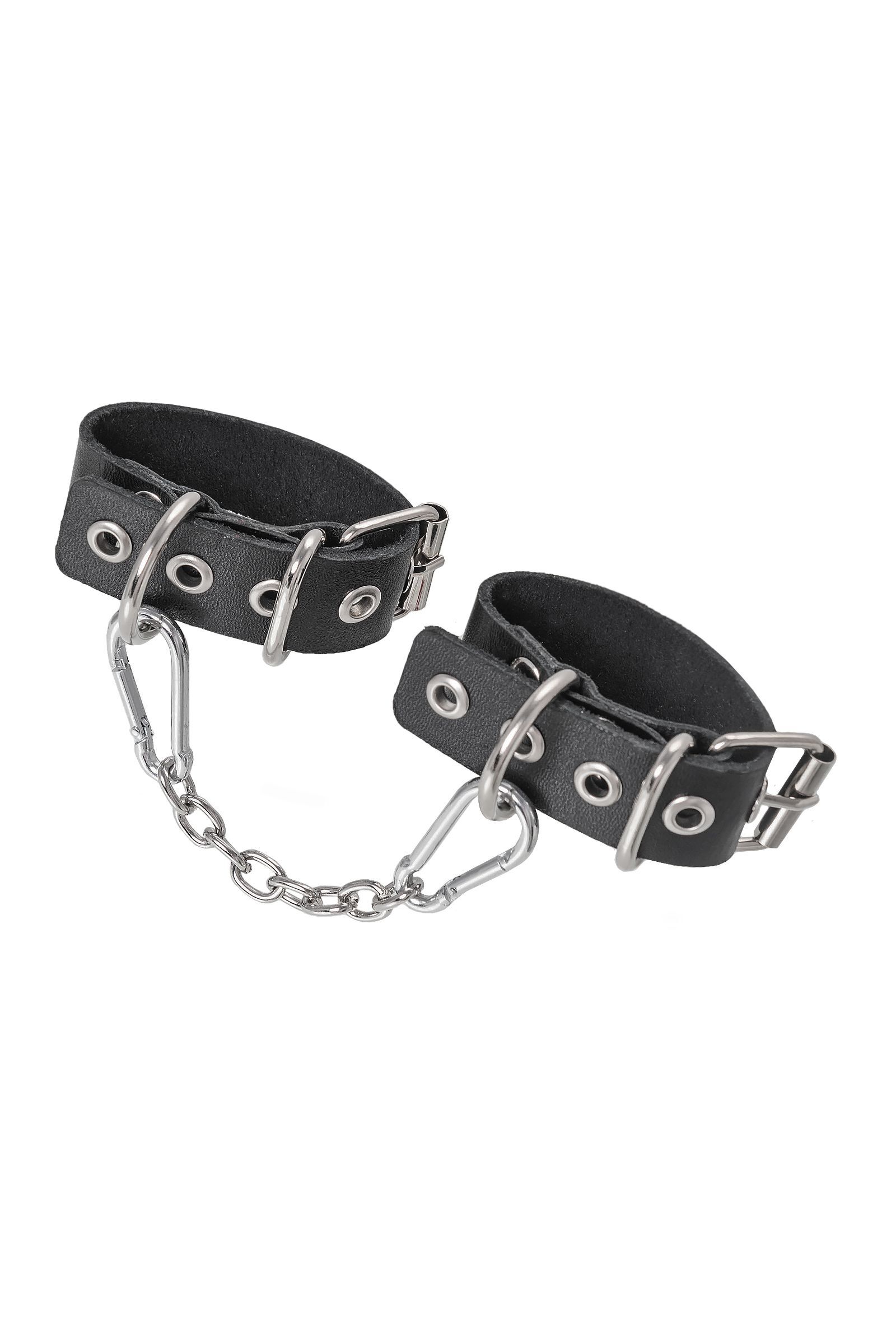 Черные кожаные наручники-браслеты из одного ремешка с люверсами