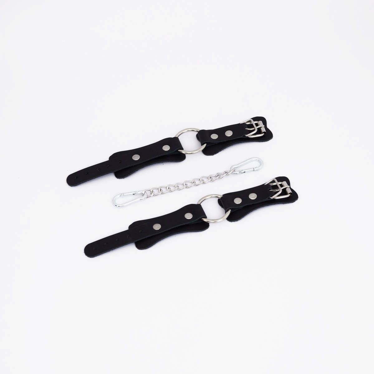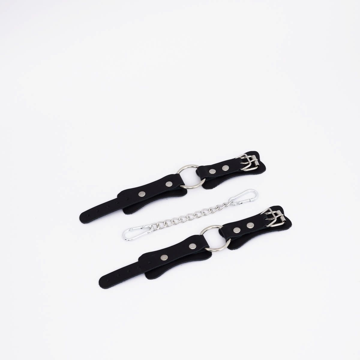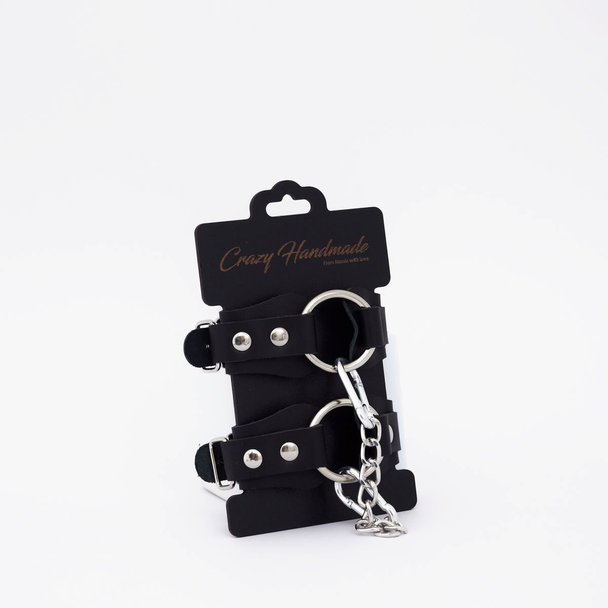 Черные кожаные наручники с кольцом