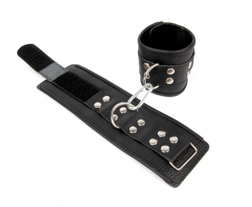 Черные кожаные наручники с заклепками с фиксацией липучками