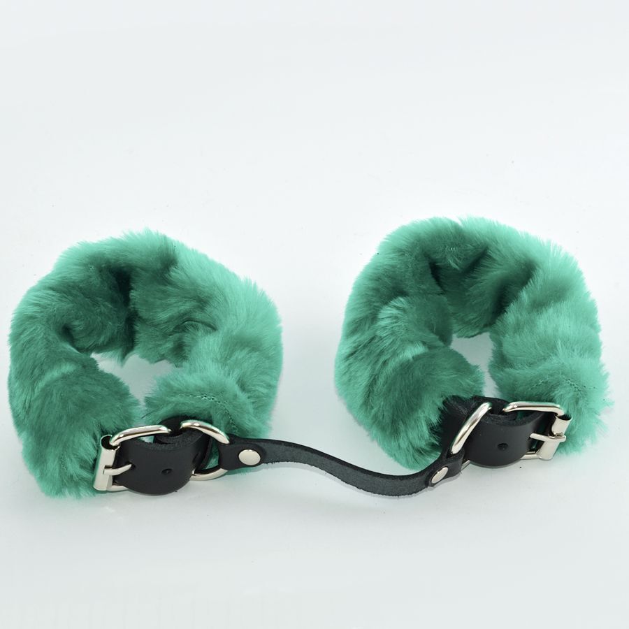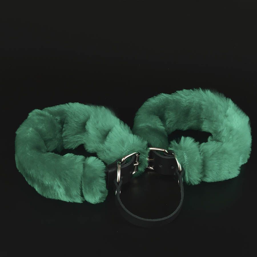 Черные кожаные наручники со съемной зеленой опушкой