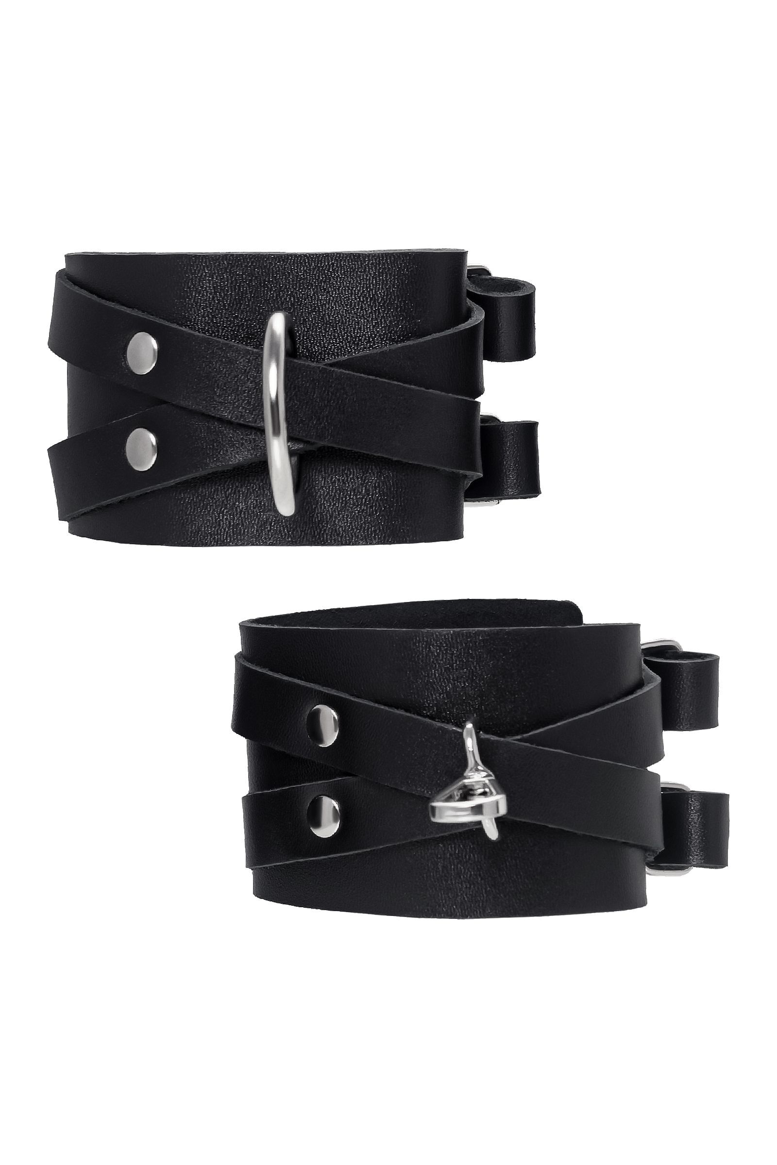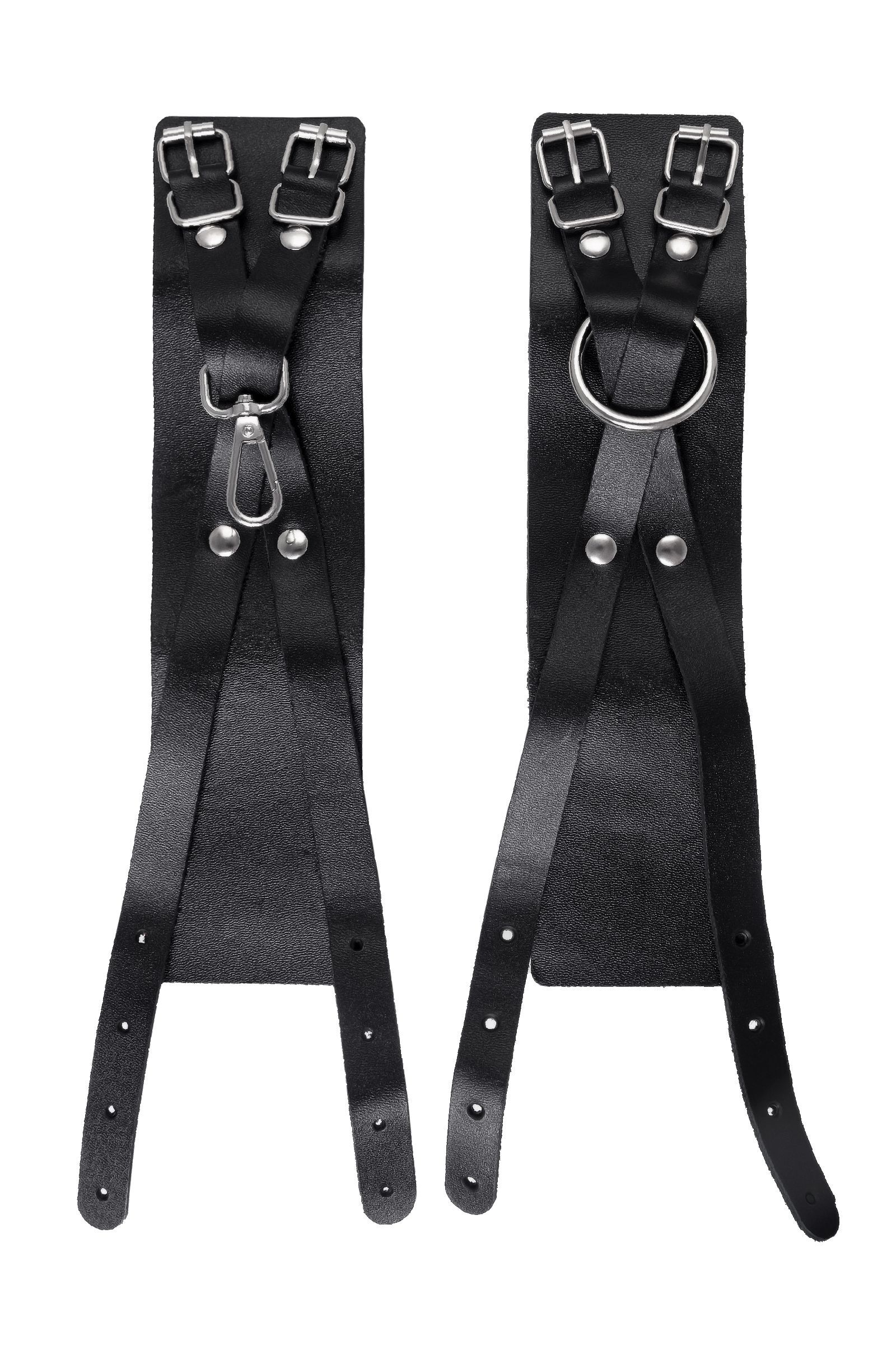 Черные кожаные оковы с двумя перекрёстными ремешками